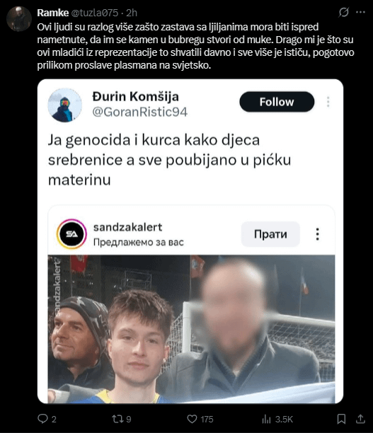 C’era il piano che Esmir non sarebbe mai nato, come nessun altro bosniaco della Bosnia orientale. La bandiera con i gigli è soprattutto un simbolo di resistenza, e non dobbiamo mai dimenticarlo, né permettere a nessuno di presentarla come una guerra o un provocatore.