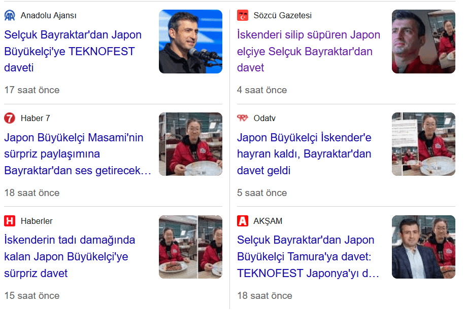 Da ieri il genero della RTE, Selçuk Bayraktar, viene elogiato sui siti d’informazione tramite l’ambasciatore giapponese, e vi partecipano sia persone dell’AKP che dell’opposizione.