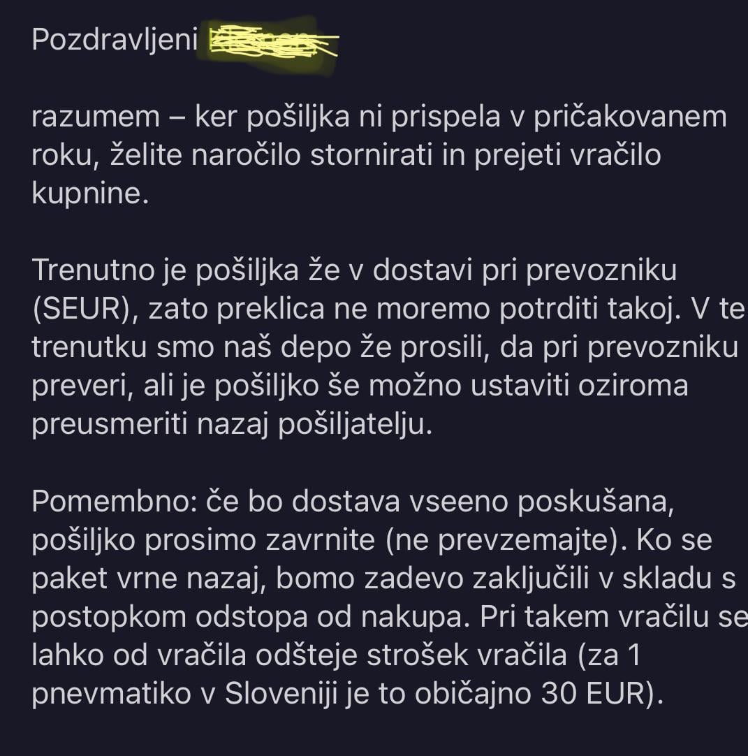 Haunting-Remove9397 on 03/04/2026 06:40 Če je spletno naročilo lahko po zakonu vrneš in zahtevaš celotno kupnino brez da rabiš razlagat zakaj.