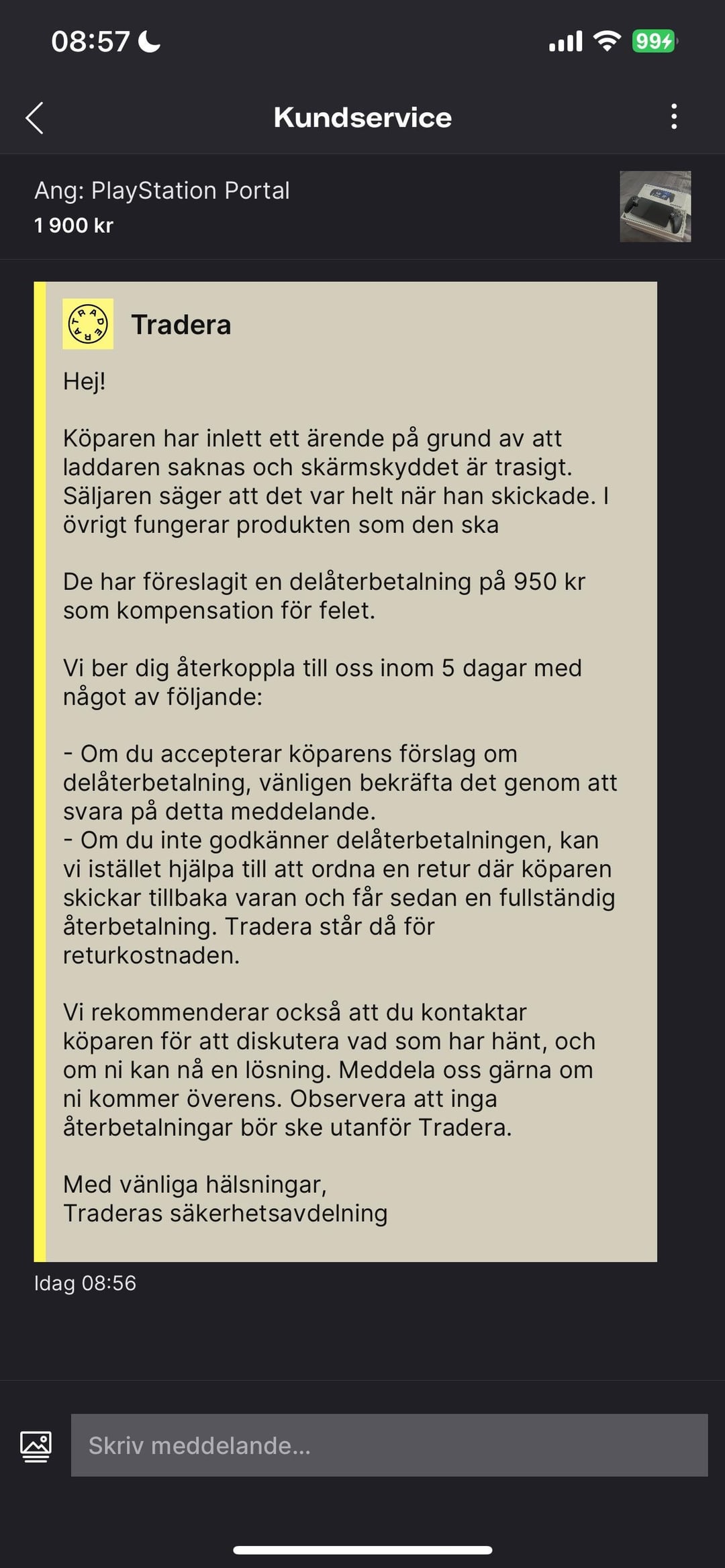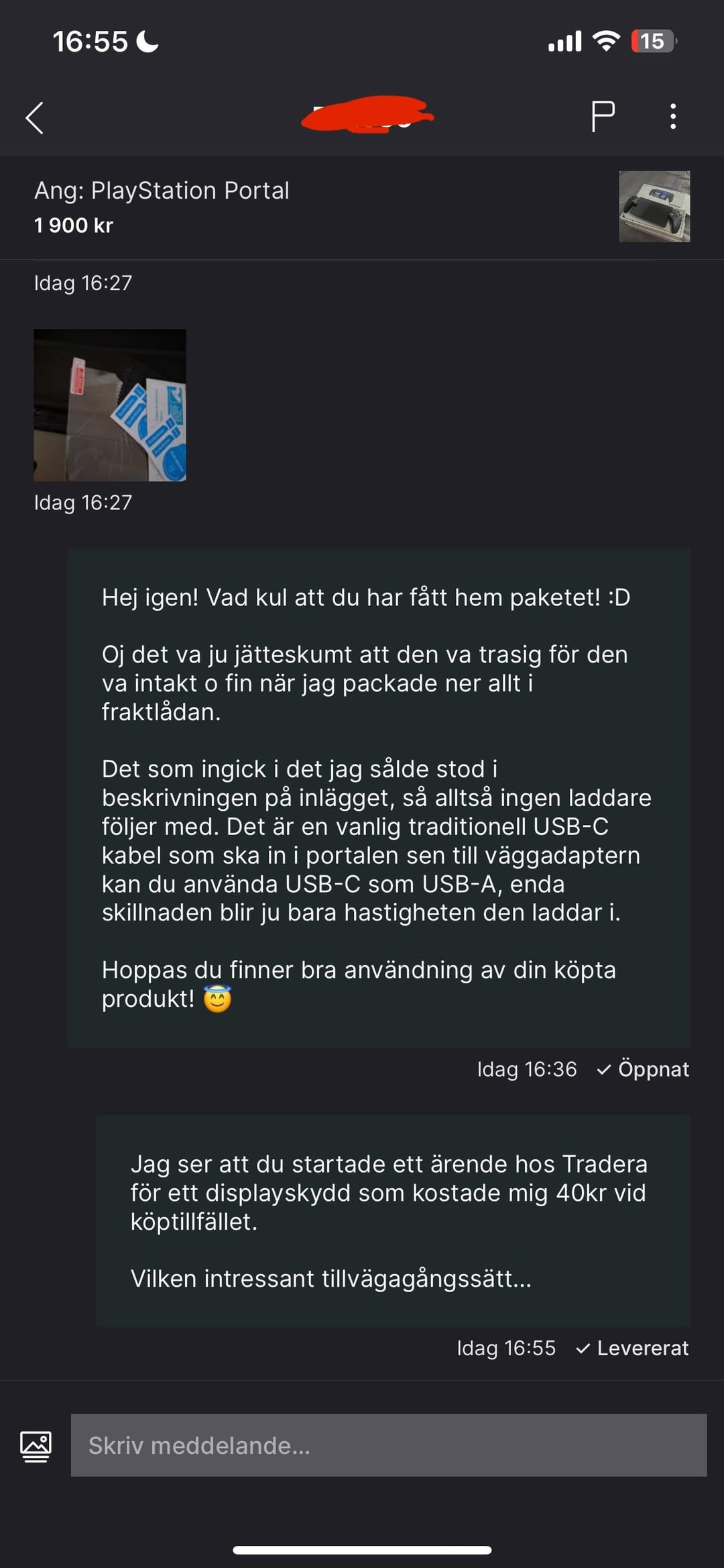 L’acquirente ha quindi aperto una controversia con Tradera DOPO che gli ho spiegato che non era mai stato incluso un caricabatterie e che anche la cover del display di ricambio era intatta quando ho imballato tutto prima della consegna, ma ha comunque mentito al servizio clienti e continua a insistere che ha diritto a un caricabatterie che non esiste nemmeno…