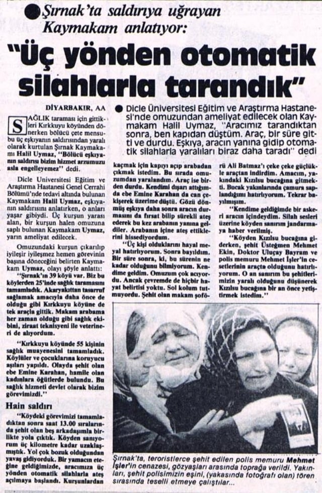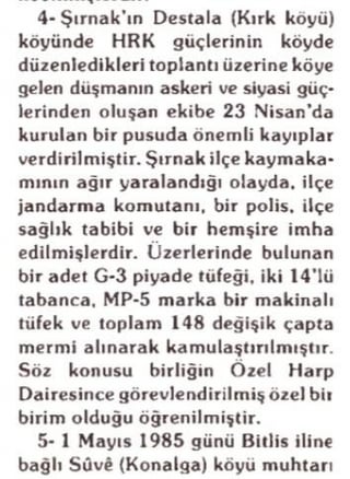 Il PKK ammise nel numero di settembre 1985 del suo quotidiano Serxwebûn di aver ucciso infermieri e operatori sanitari nel massacro.