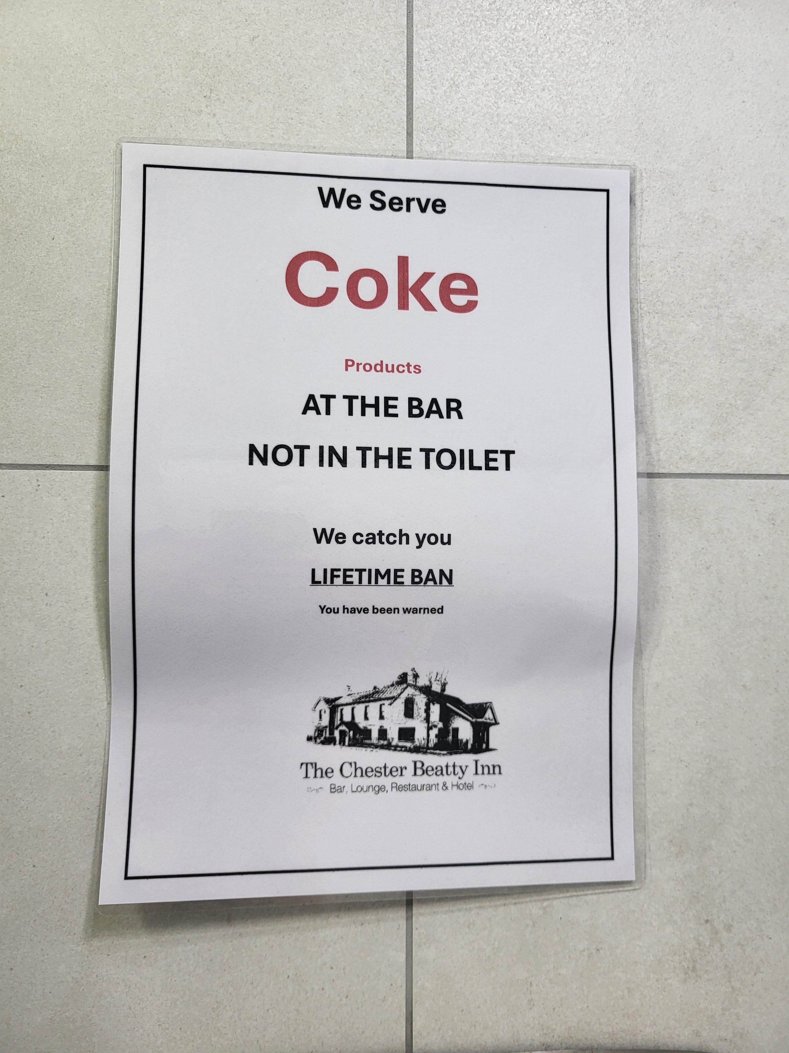 What kind of coke addict is doing this at a place called the Chester Beatty Inn? 🤣