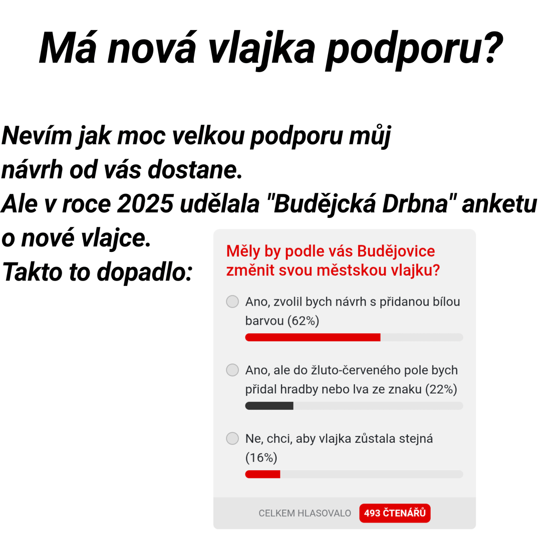 Ovviamente. Le bandiere sono soggettive e il mio design potrebbe non piacerti. L’ho messo qui solo per divertimento. (Fatto curioso: La bandiera di Budějovic è la seconda bandiera cittadina più antica della Repubblica Ceca, la prima è quella della città "Argento")