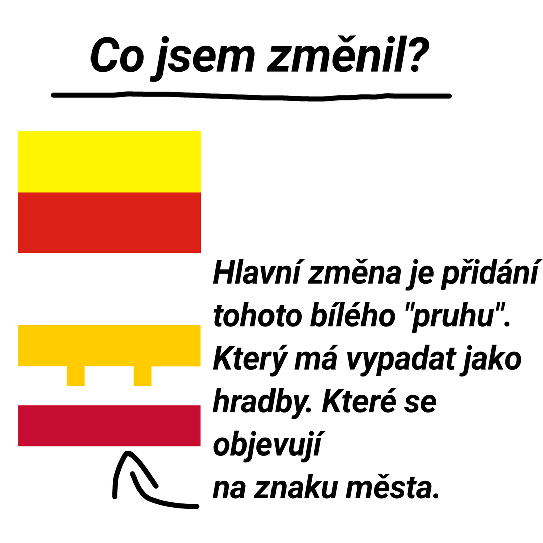 Mně se to líbí. Je to jednoduché tak, jak vlajky mají být, zároveň jsem hned poznal, že jsou to hradby, takže je to i intuitivní design. Navíc vycházíš z tradiční varianty, kterou upravuješ pouze účelově, takže nedochází k radikální změně. Za mě dobrá práce.