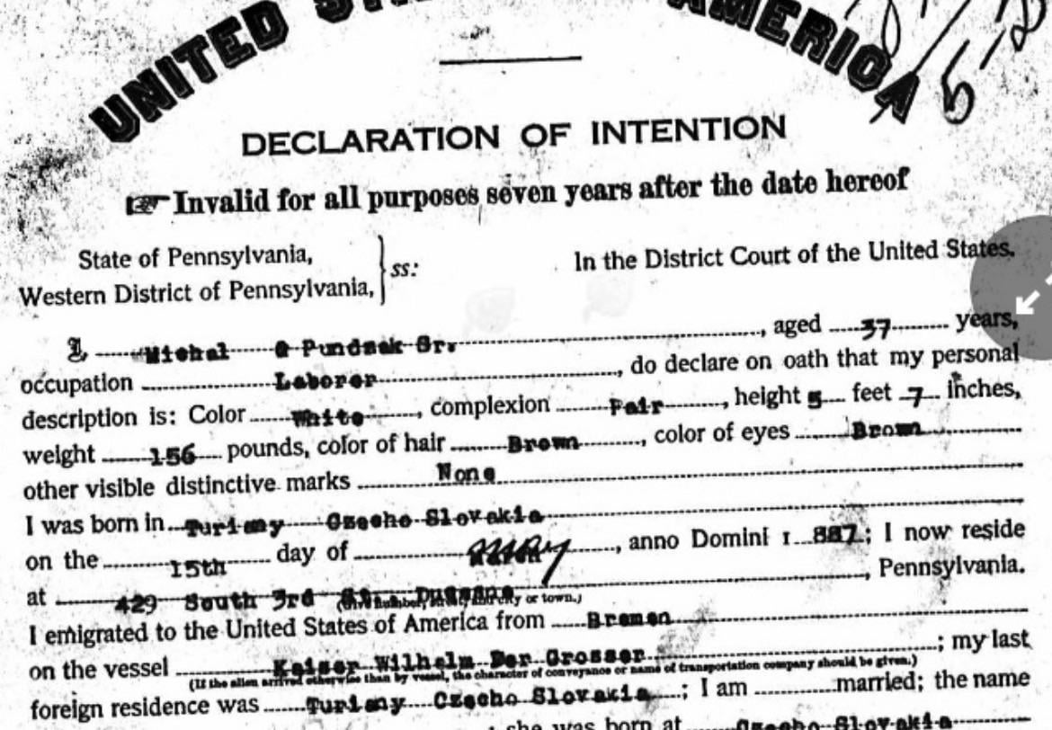 The correct answer is the village in the east of Slovakia that is now called [**Turany nad Ondavou**](https://en.wikipedia.org/wiki/Turany_nad_Ondavou). It was actually called “Turiany” until 1948, which is precisely what’s on the birth certificate. Additionally, according to our surname databases, there should still be some people with the names Pundžak[ová] / Pundžák[ová] living in this village, and all of these surnames appear only in this particular region of current Slovakia.