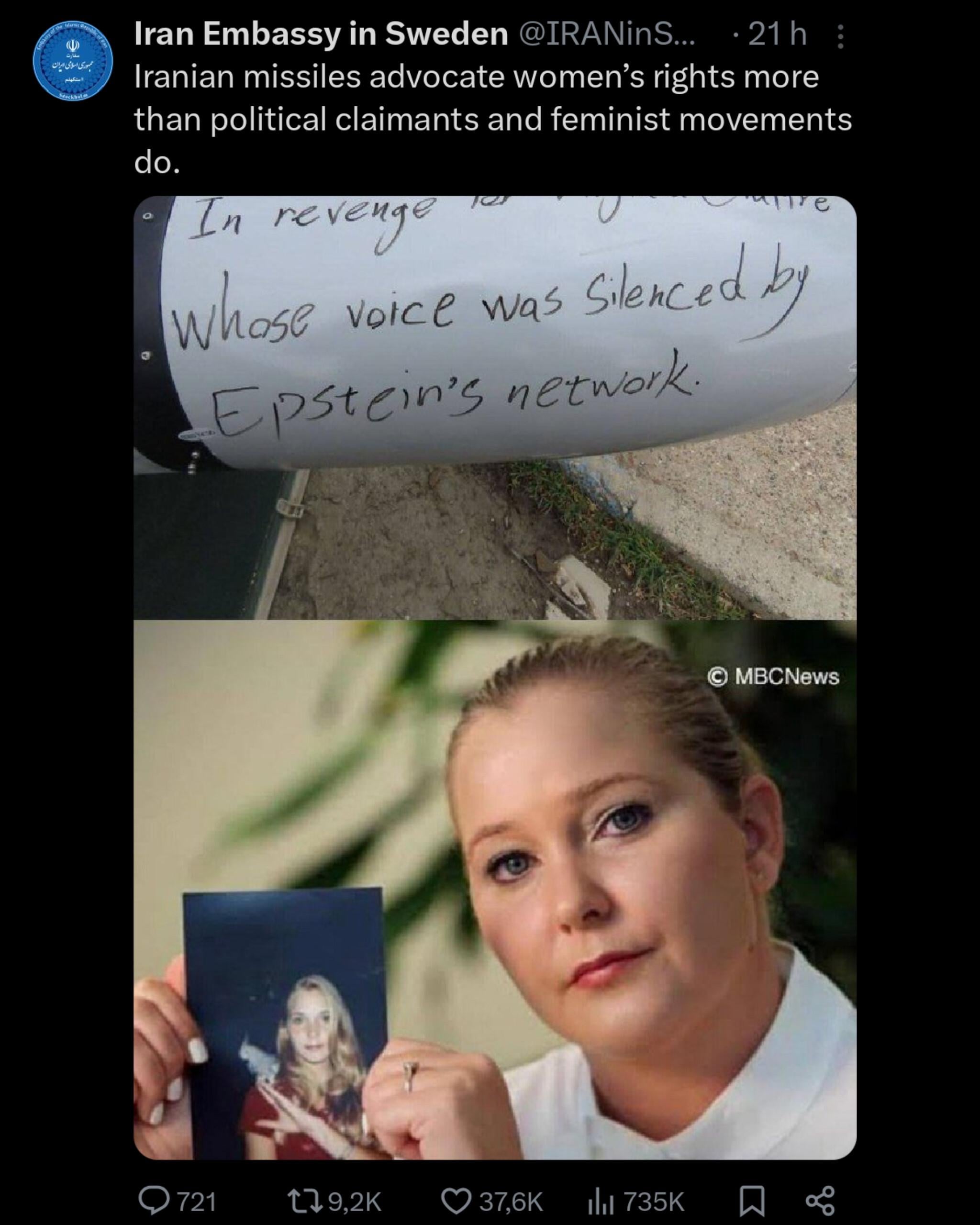 Ambasciata iraniana in Svezia… (La legge iraniana consente il matrimonio dall’età di 13 anni, anche prima tramite tribunale, e lo stupro all’interno del matrimonio non è un crimine)