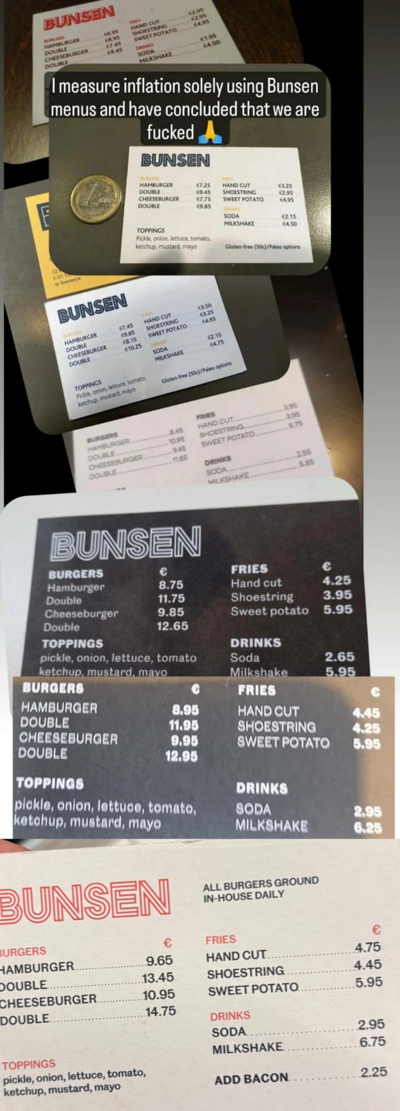 Does anyone have these in order with years? Also fairly relevant to mention if the good still tasted good. In my oppinion they still taste good and are subject to the rising cost of everything. There’s other businesses where prices have increased and the quality hit the floor meaning I won’t come back. I will return to bunsen.