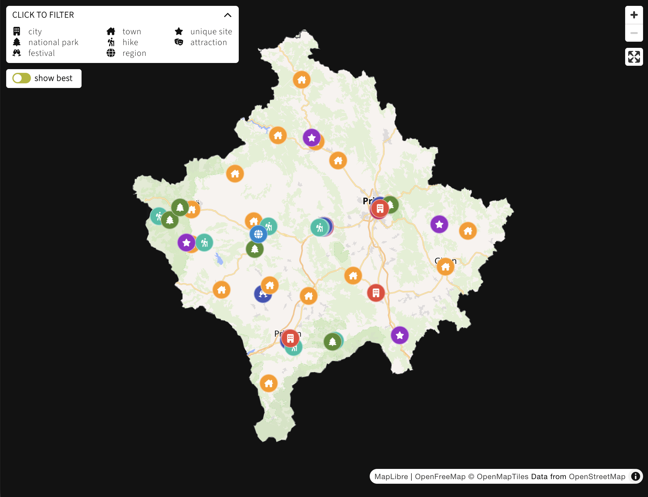 Viaggiando in giro per il mondo da oltre 20 anni, ho lavorato al progetto dei miei sogni: creare una risorsa unica per i viaggiatori. Con l’aiuto del feedback in questo subreddit, ora l’ho aggiornato mappa interattiva del Kosovo per chiunque sia interessato alla visita (con informazioni dettagliate per ogni punto forte).