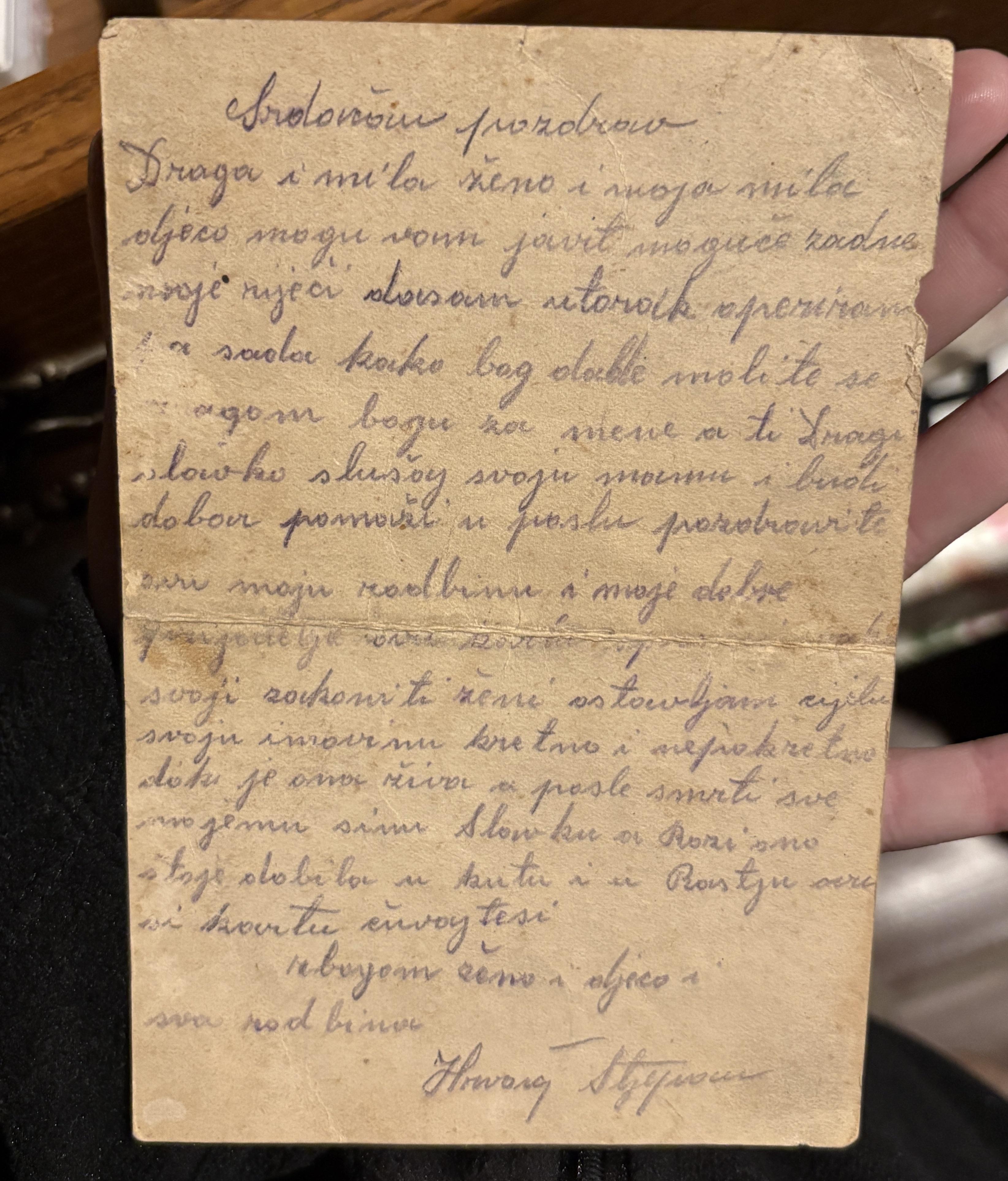 Sto facendo le pulizie di primavera e ho trovato questa antica lettera dell’era NDH che il mio bisnonno inviò alla sua famiglia (la mia bisnonna e i loro figli).
