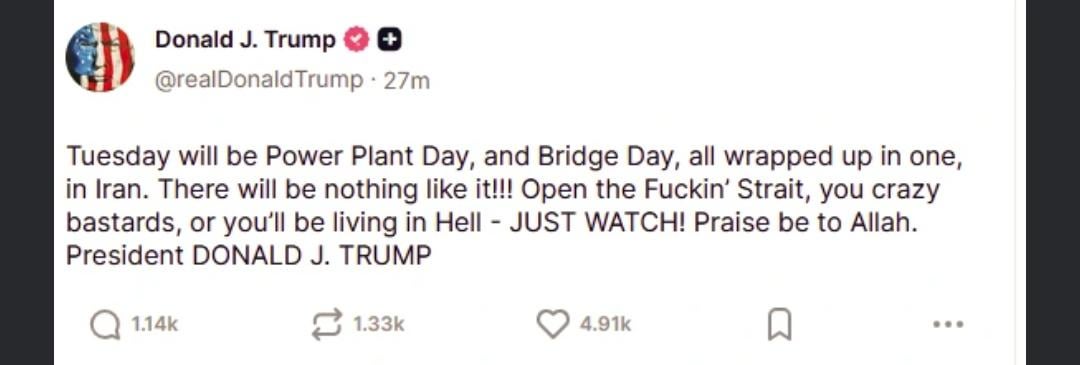TalkersCZ on 05/04/2026 13:10 Trump je dement, který nemá šajna, jak funguje svět. Irán potřebuje udělat dost velký ekonomický nátlak, aby to Trump znova nezkusil. I kdyby přišli o elektrárny a mosty. Místo aby se s nimi dohodl, tak to bude znovu eskalovat, což povede k tomu, že Irán bude taky eskalovat. Jeho neschopnost základní logiky je obdivuhodná.