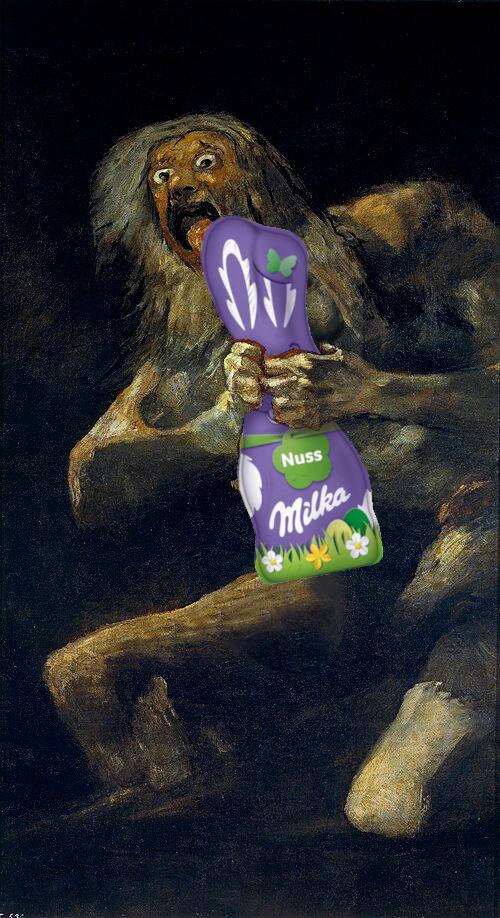 Lo chiamo Saturno divora il suo coniglietto sorridente Milka https://i.redd.it/s1rreln47etg1.jpeg di ThePeterPhantom
