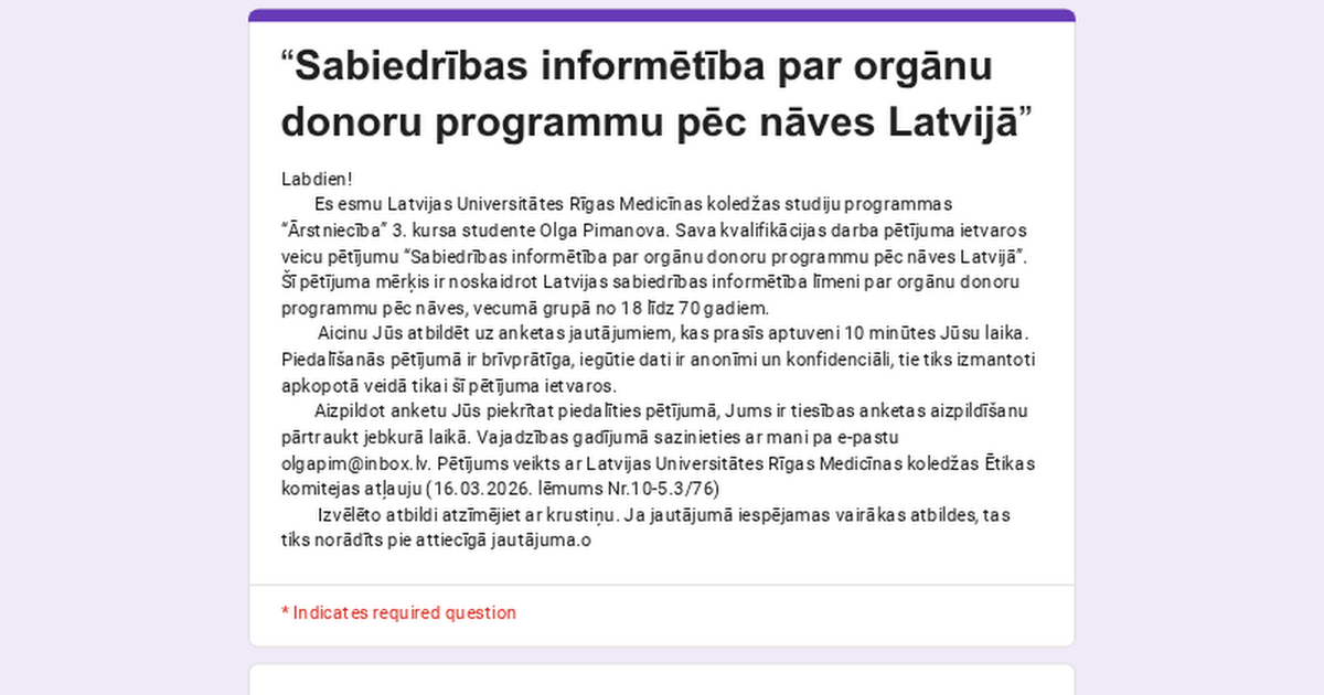 Sto conducendo un’indagine sui donatori di organi di cittadini lettoni