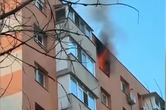 >În imagini publicate de Observator se văd flăcări și o coloană de fum ieșind pe fereastra unui apartamanent situat la etajul 10 al unui bloc din sectorul 3 al Capitalei.