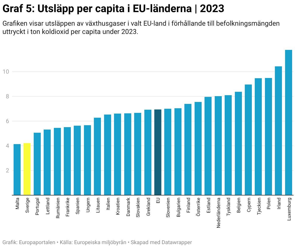 Att resten av EU ligger ca 50% högre betyder förstås inte att Sverige kan sluta försöka. Målet är inte att vara bäst, målet är att helt avskaffa fossila bränslen. Dessutom kan vi som ligger i framkant i många avseenden hjälpa andra länder, genom att utveckla ny teknik och nya samhällsstrukturer.