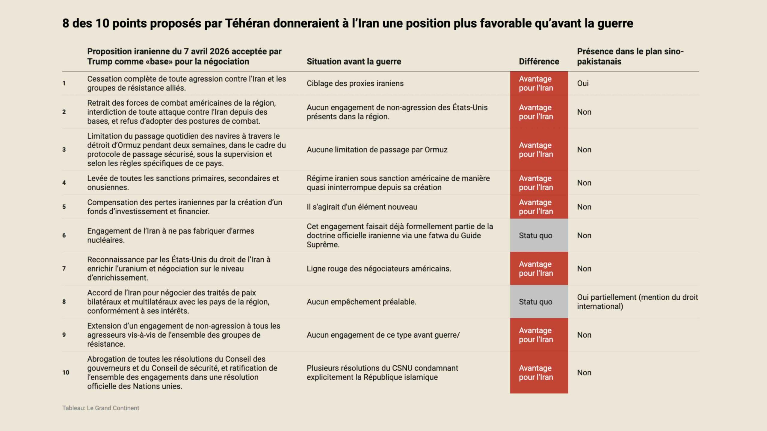 Je soupçonne que Trump n’a pas bien compris ce qu’il acceptait avant que Leavitt puis lui même ne fasse marche arrière, que les iraniens ont, à tort, considéré que Trump venait de capituler et qu’au final, les positions de part et d’autre sont si divergentes que je vois mal comment on réconcilie les deux dans les quinze jours.