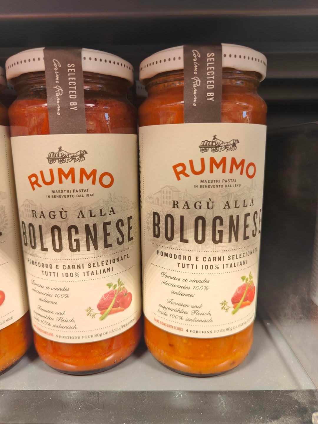 En Italie, le ragù de Rummo n’existe pas, je pense qu’il est interdit par le contrôle policier exercé par les grand‑mères qui cuisinent
