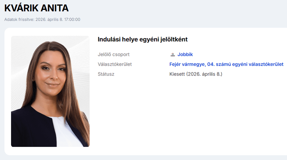 I singoli candidati rappresentativi di Jobbik si sono ritirati oggi nelle circoscrizioni elettorali di Dunaújváros e Zalaegerszeg. IL "abbandonato" significa che ha fatto un passo indietro.