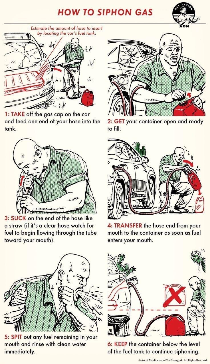 My dad has so many old school stories of siphoning petrol back in the 70s.