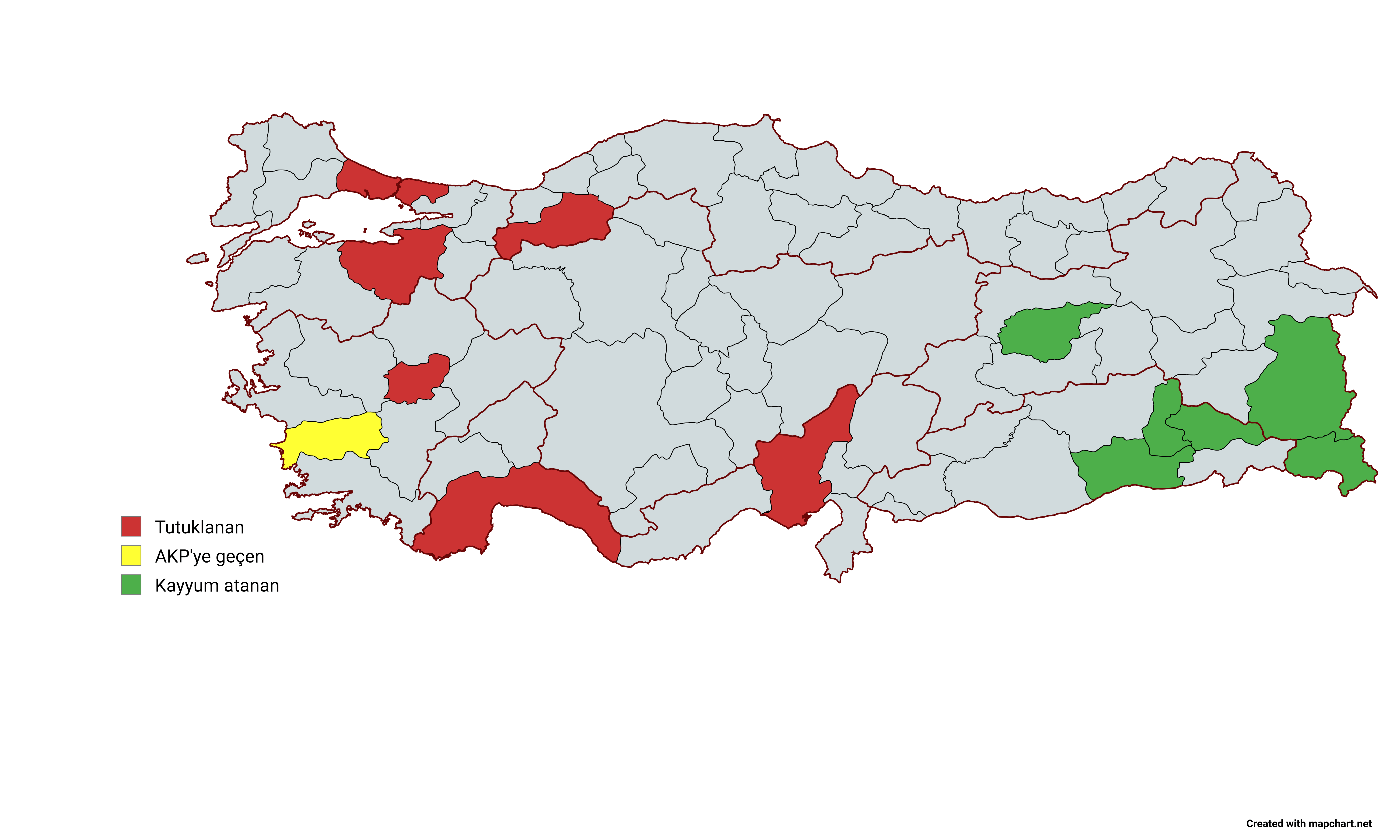 Yeşil olanlar Dem Parti kayyumları mı? Eğer öyleyse değişen bir şey olmamış da.