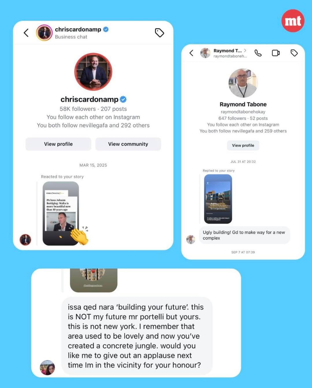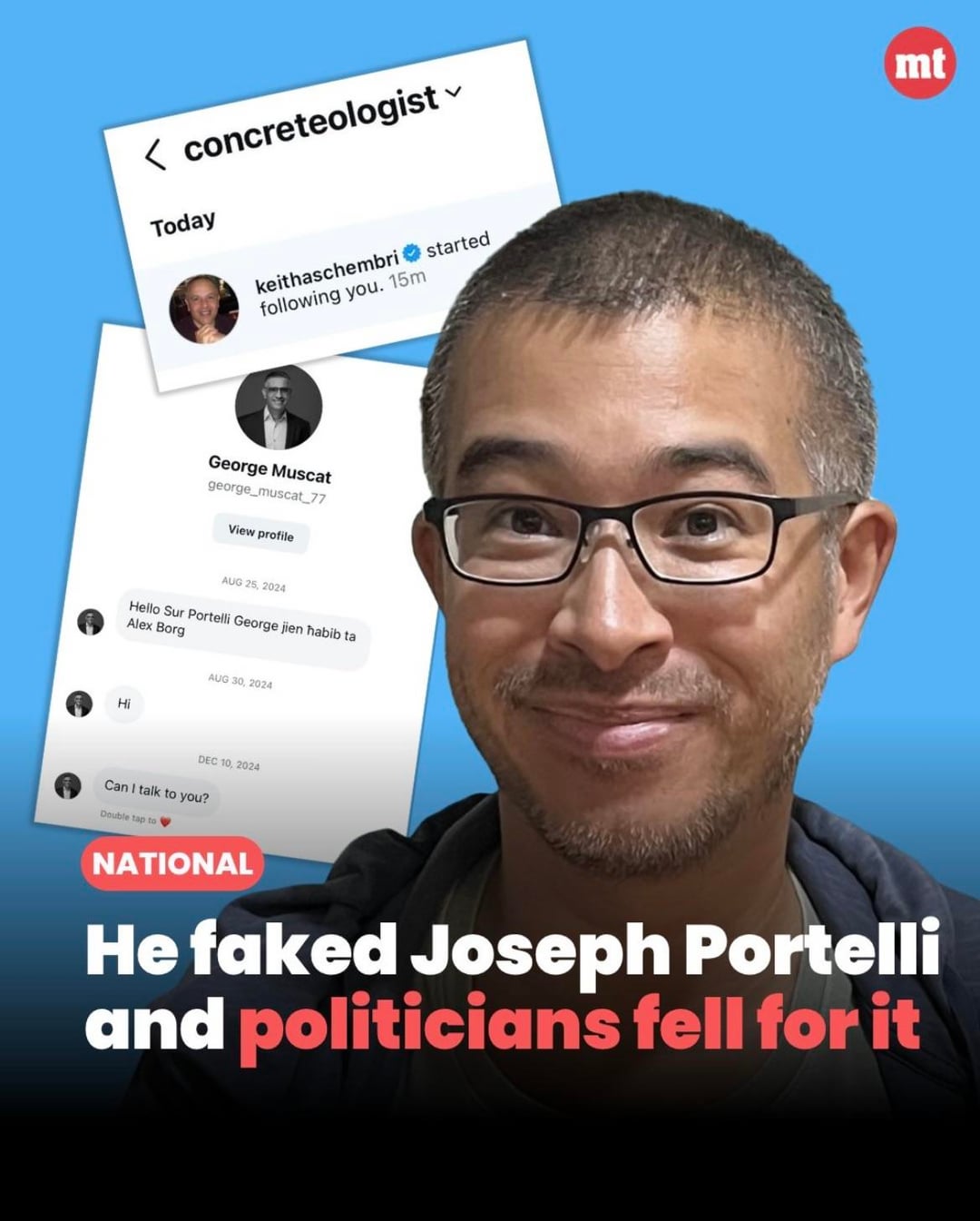 MaltaToday: 5 aprile https://www.maltatoday.com.mt/news/national/140763/he\_faked\_joseph\_portelli\_and\_politicians\_fell\_for\_it WhosWho.MT: 6 aprile https://whoswho.mt/it/joseph-portelli-era-a-consapevole-del-falso-profilo-instagram-impersonandolo The Maltese Herald: 9 aprile https://themalteseherald.com/2026/04/09/joseph-portelli-wants-to-pull-down-a-satirical-account-about-him/ https://www.reddit.com/gallery/1shcr4y di Patvsq