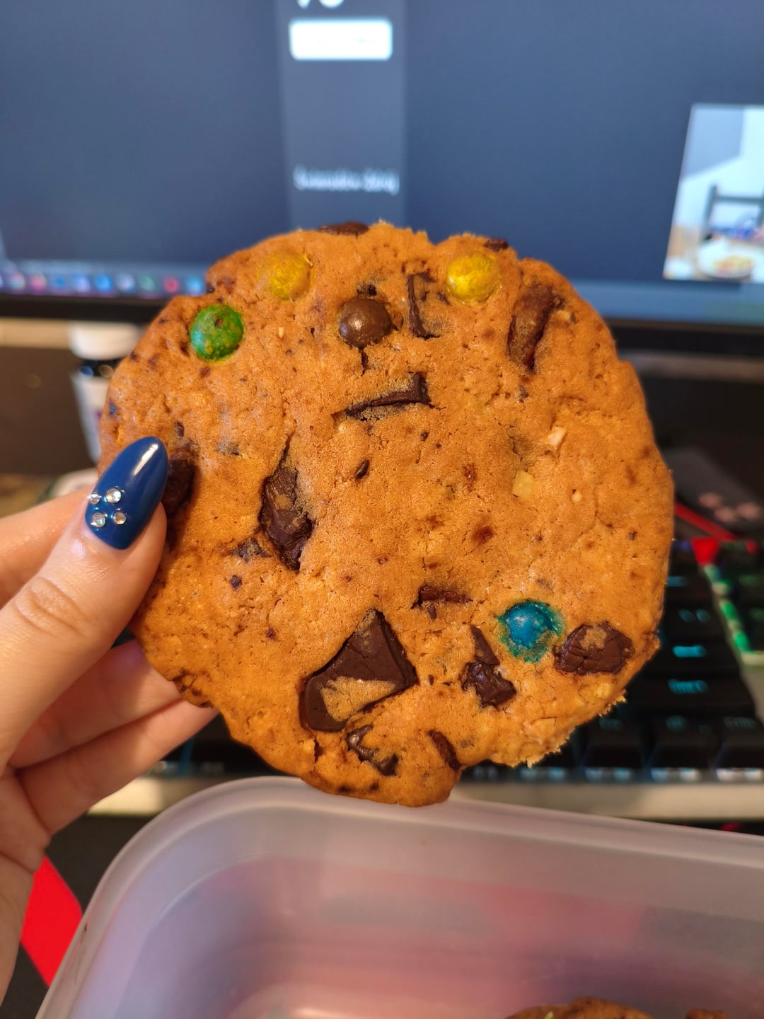 Ciastka bardzo Å‚adne (chociaż osobiÅ›cie nie jestem fanem tych kolorowych kawaÅ‚ków które imo trochÄ™ psujÄ… estetykÄ™ klasycznego chocolate chip’a) ale paznokcie jeszcze Å‚adniejsze