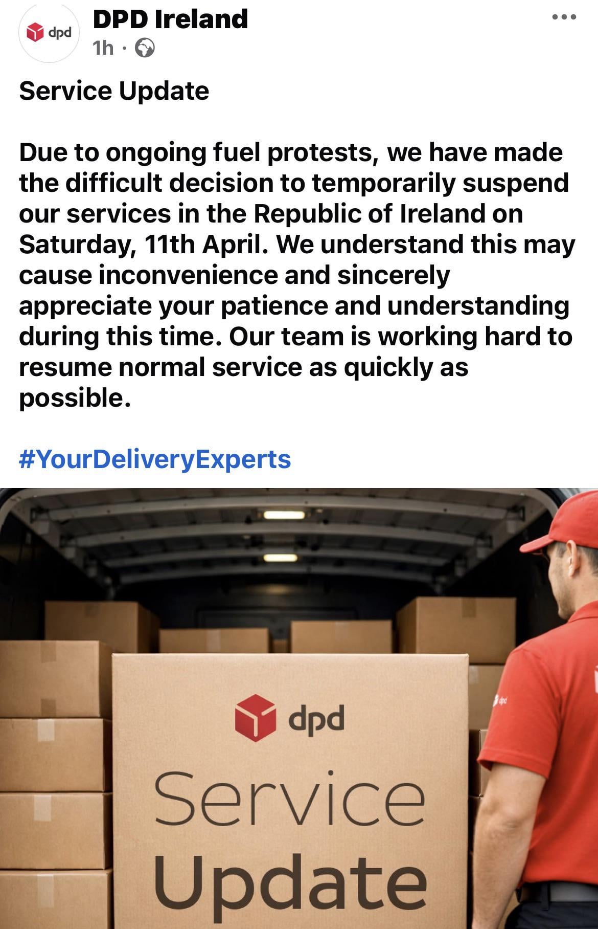 There goes my amazon parcel coz pretty sure An Post is affected too.