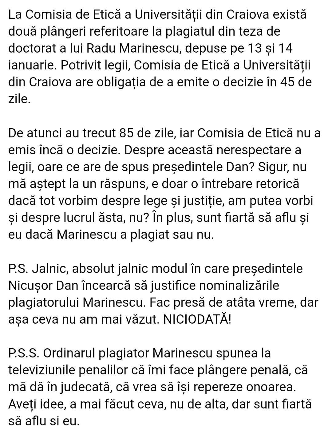 Gata s-au închis toate discuțiile despre plagiate atunci când domnul președinte Nicușor Dan ne-a spus că așa era atunci, toată lumea plagia.