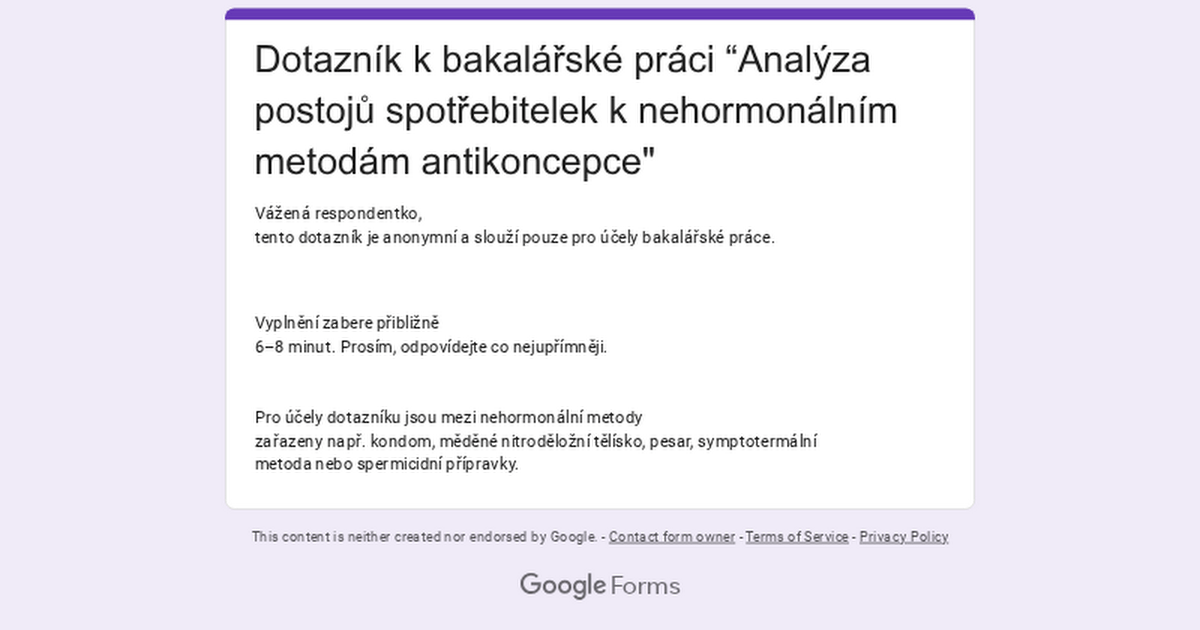 Vyplneno. Doufam ze tva bakalarka pomuze nejak rozsirit povedomi o nehormonalni antikoncepci a pomuze zenam uvedomit si, ze cpat do sebe extra hormony neni jedina cesta 🫶