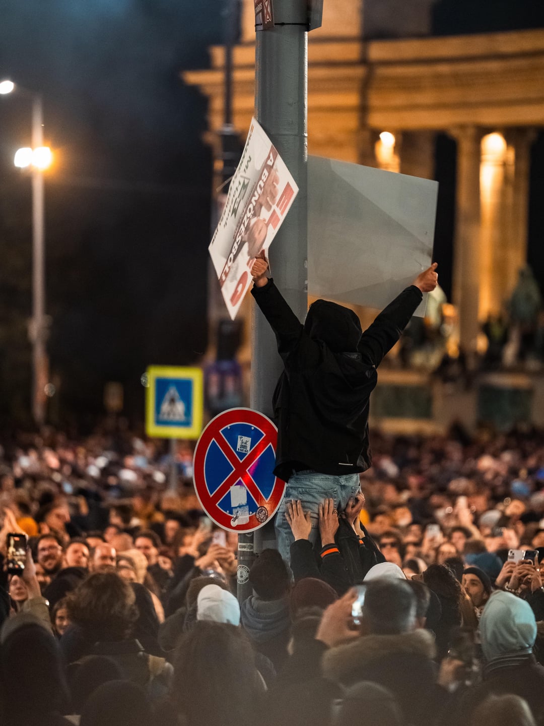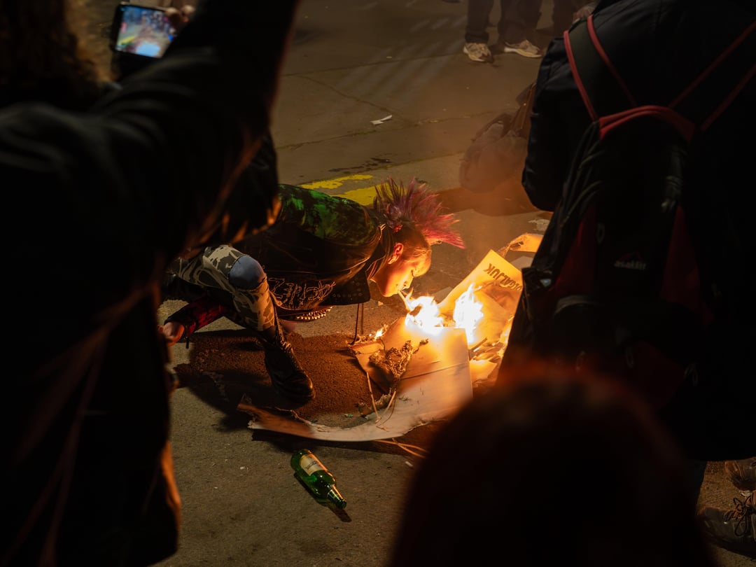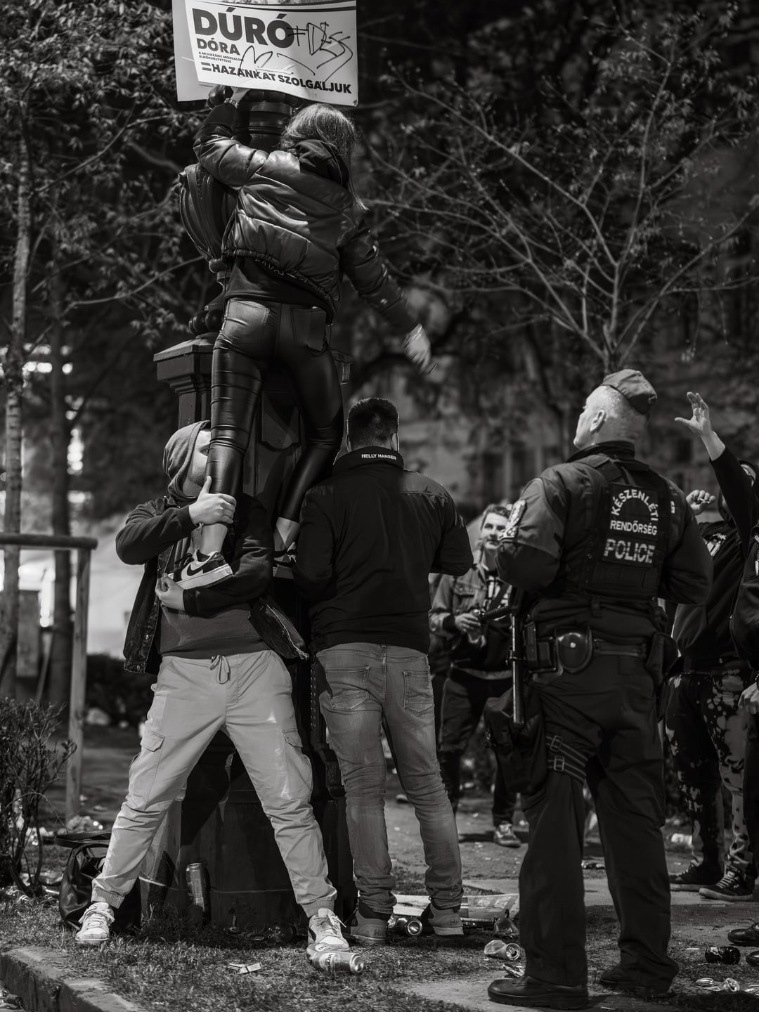 A kedvencem a punk lány az égő plakáttal gyújta meg a cigit, vele holtversenyben, a rendőr előtt szedik le az a geci plakátot.