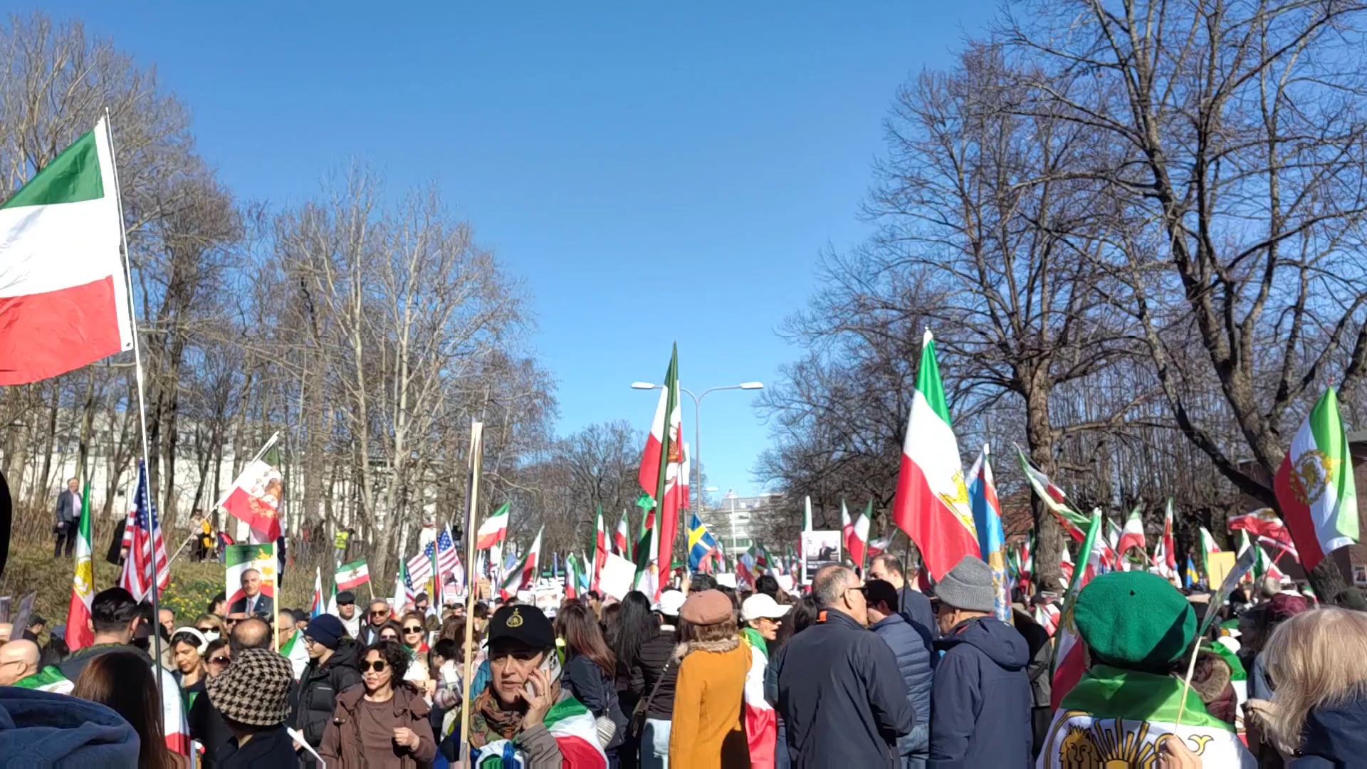 Migliaia di iraniani si sono radunati oggi davanti all’ambasciata americana a Stoccolma e hanno marciato attraverso Strandvägen fino alla Gustav Adolfs Torg