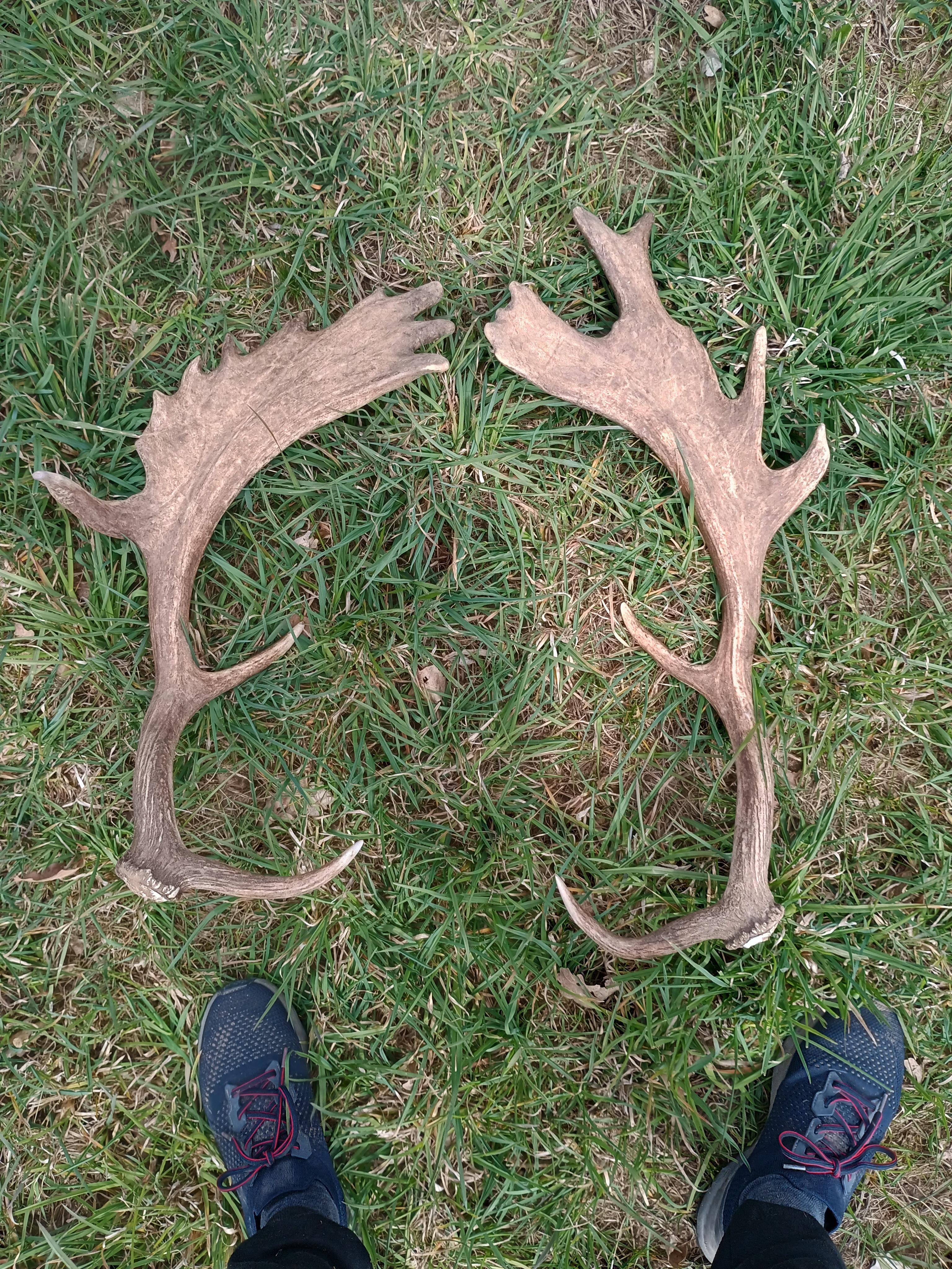 Našla jsem podobný parohy i s celou ožižlanou kostrou. Anžto se to blbě schovává pod bundu, tak jsem dala echo majiteli honitby :/