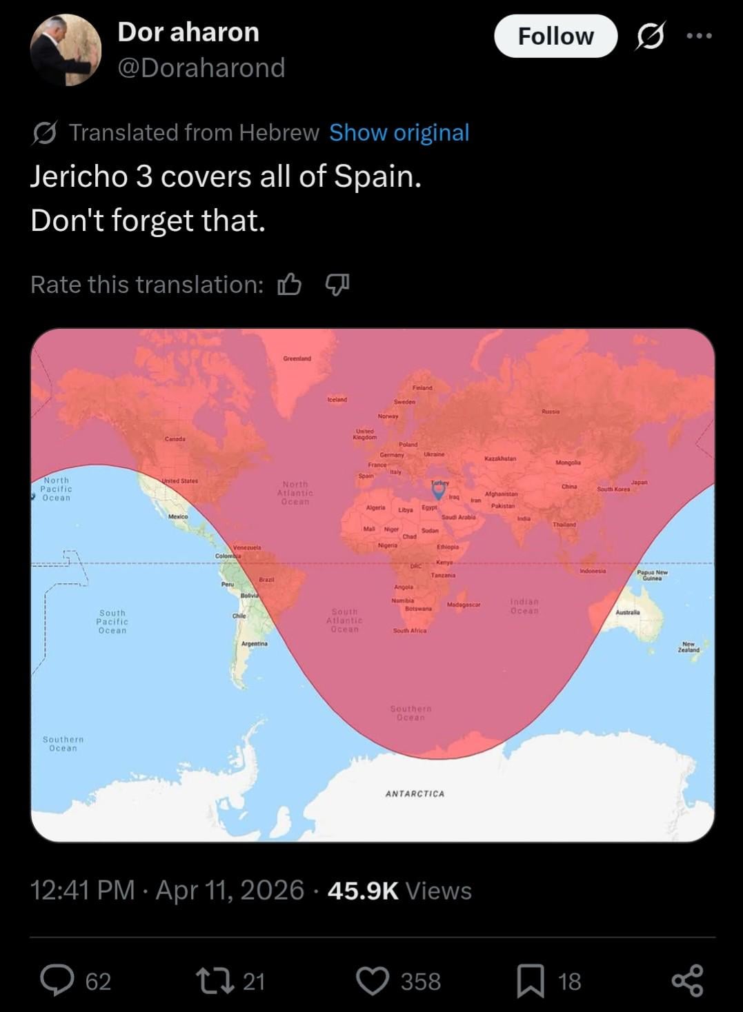 Il tweet che minacciava la Spagna con una testata nucleare ha ricevuto centinaia di Mi piace sul Twitter ebraico