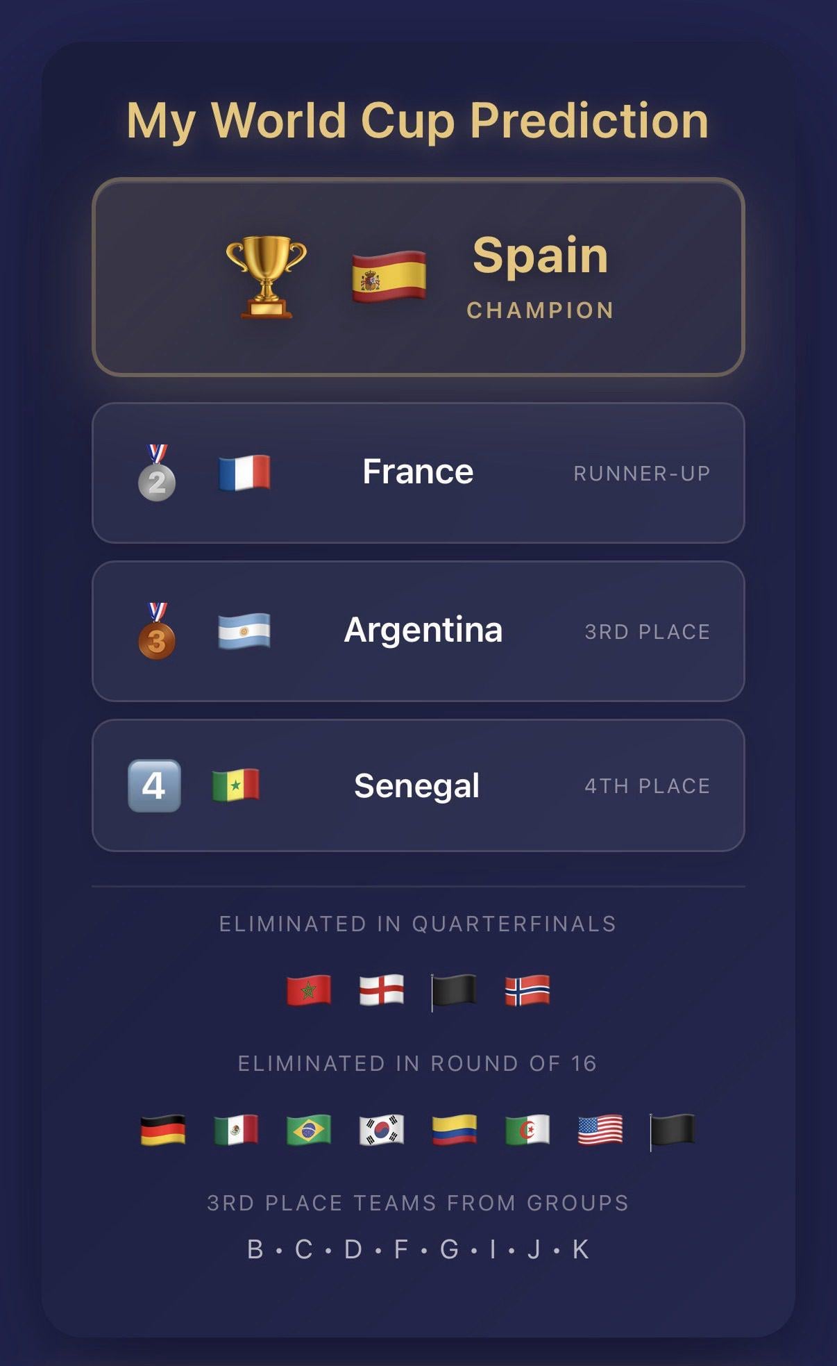 Ispast cemo u grupi,zijanit od Kanada na pocetku,x sa Katarom i na kraju izgubit od Svicarske i svi ce krenut pljuvat po selektoru…