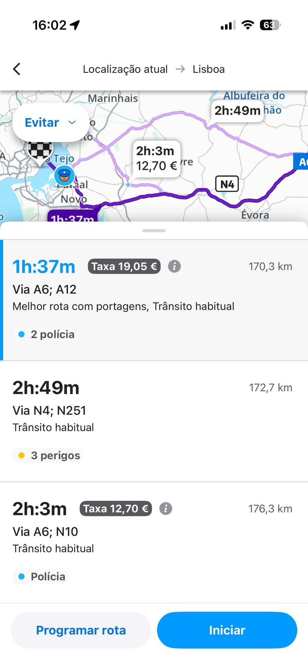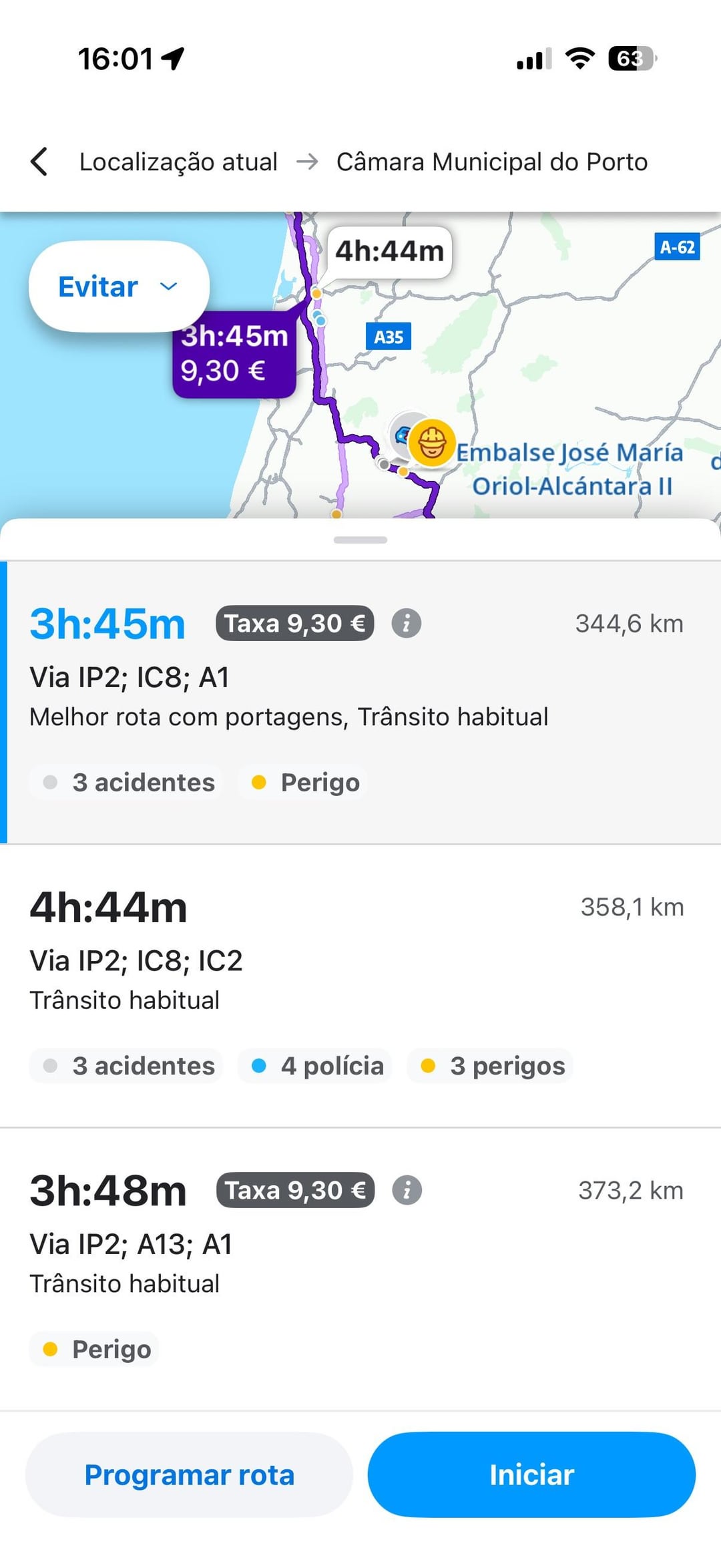 Num percurso tens IC, IP, A e no outro só tens As (A6 e A12).