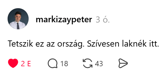 Ill_Ad2480 on 14/04/2026 10:08 Nem tudom szeretne-e köztársasági elnök lenni de én örülnék ha végre oda is egy becsületes ember kerülne.