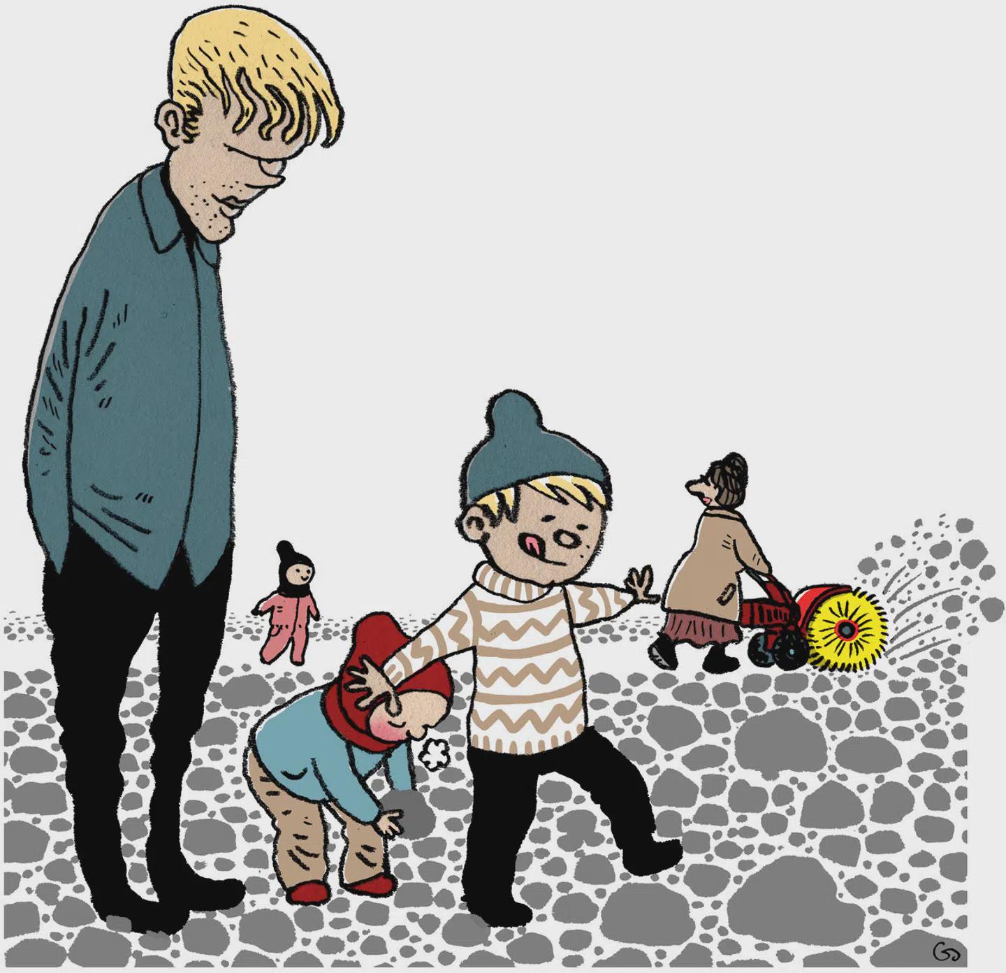 >Det er underligt, for om aftenen sætter vi os i sofaerne og læser højt af børnebøger om Totte, der selv bager kage, og om Mitcho og Sebastian, der rejser ud i verden i en kæmpestor pære. Det er den særlige danske pædagogiske tradition, som vi stadig identificerer os med: fortællinger om afslappede forældre og kompetente børn; *Lille Virgil*, *Silas og den sorte hoppe*, *Bennys badekar* … det er sådan, vi ser os selv, men det er ikke længere sådan, vi er.