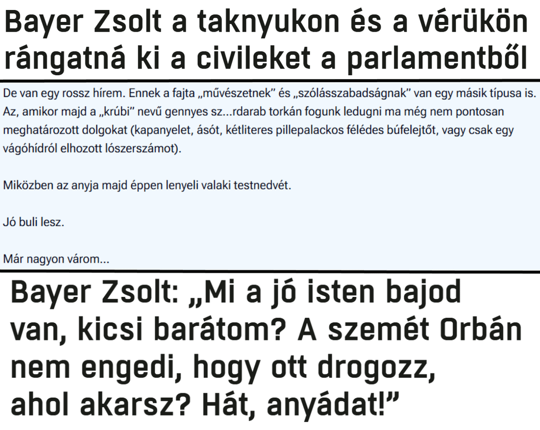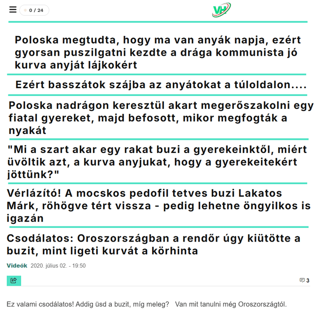 Ne felejtsük el a mindenszo.hu ámokfutását sem. Ahogyan hiányzik a felsorolásból a Vadhajtások azon posztja, amiben diákok véresre verését követelte a rendőrségtől, Bencsik András melegek kivégzésén élcelődését és Tiszások lepatkányozó cikkét se felejtsük ki. Puzsért is pedofilozták, Perintfalvi Ritáról valótlanul terjesztették, hogy szaros pornóban játszott, Ábrahám Róbert gyűlölködése se maradjon már ki.