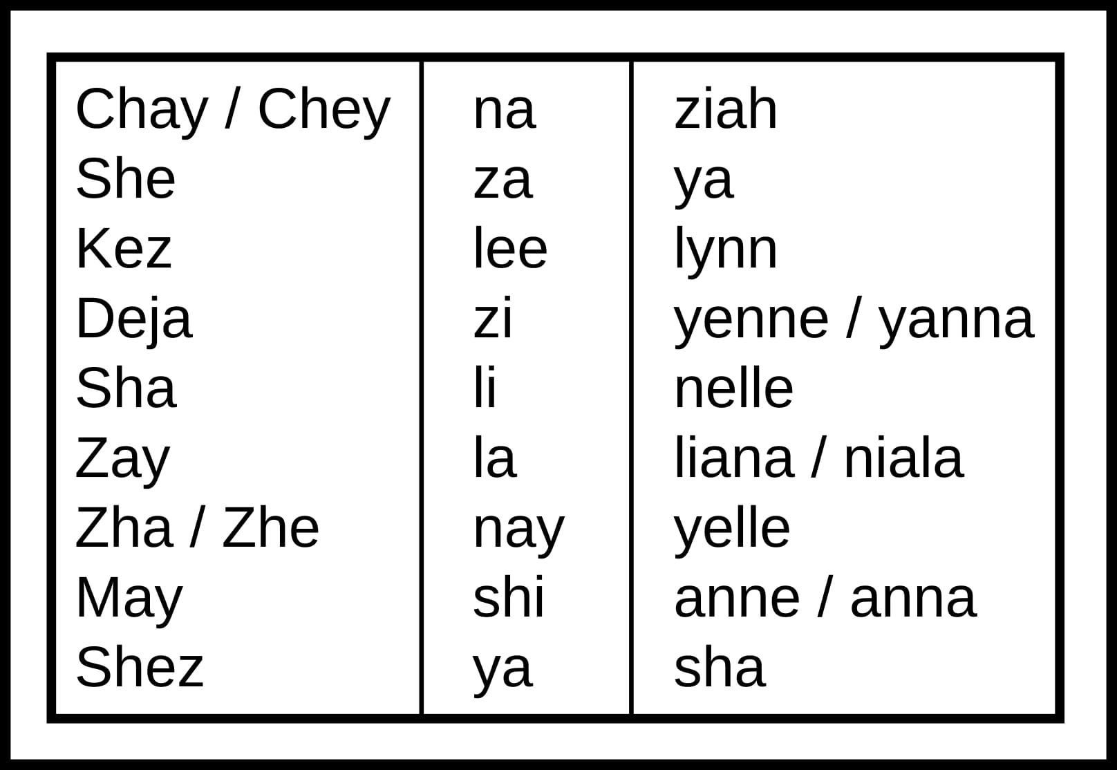 Aspetti una bambina e hai difficoltà a trovare un nome originale? Per favore prova la prima edizione del generatore di nomi per ragazze maltesi che ho messo insieme velocemente. Scegli semplicemente una sillaba da ciascuna colonna. Aspetto con ansia tutti i tuoi Chey-li-lynn e Zhe-za-ziah! Eventuali suggerimenti e miglioramenti sono benvenuti!