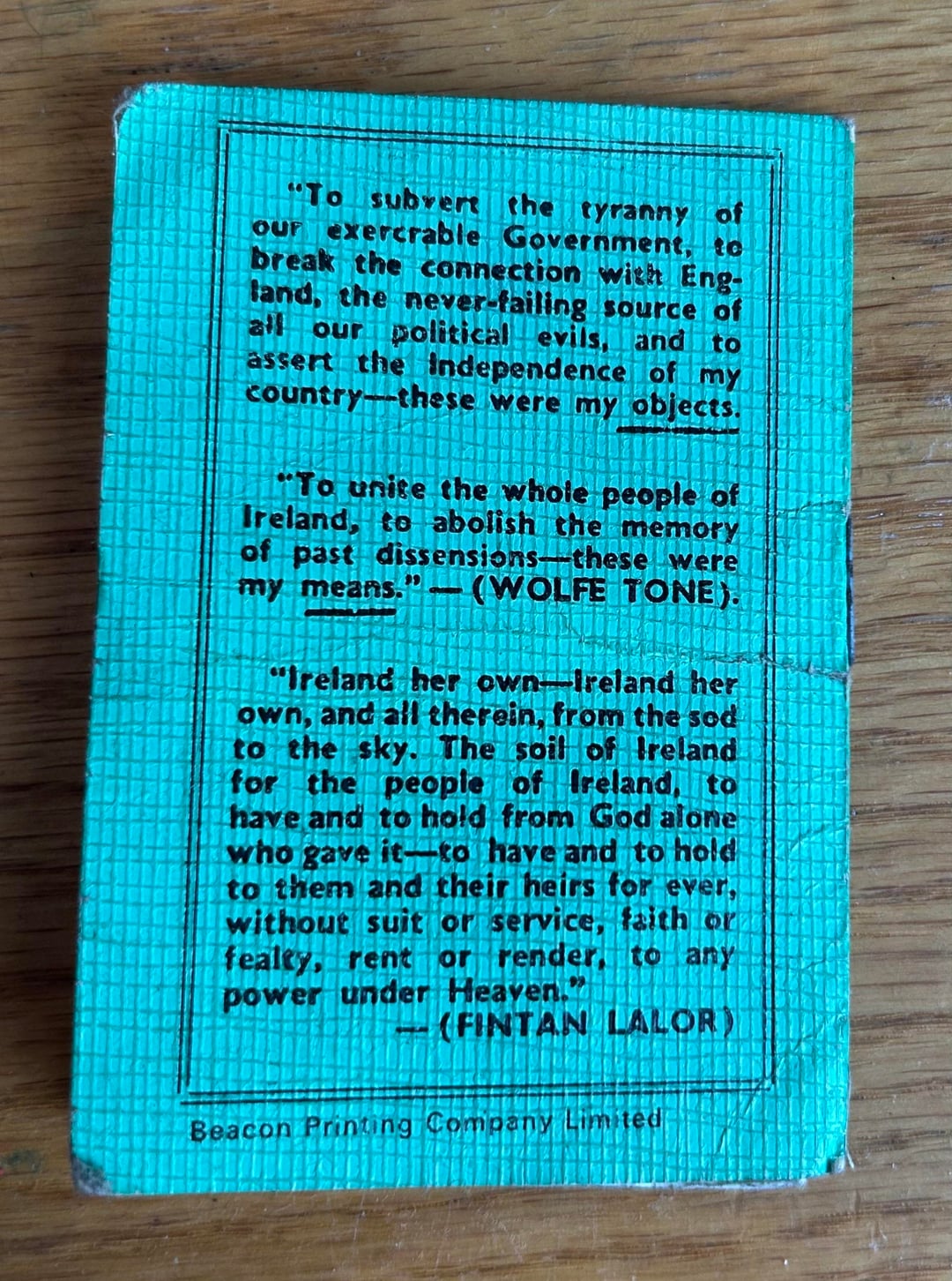 I can only guess the date, but it would have to be the 20’s with FF having extremely Republican aims such as carrying out the program of the first Dáil.