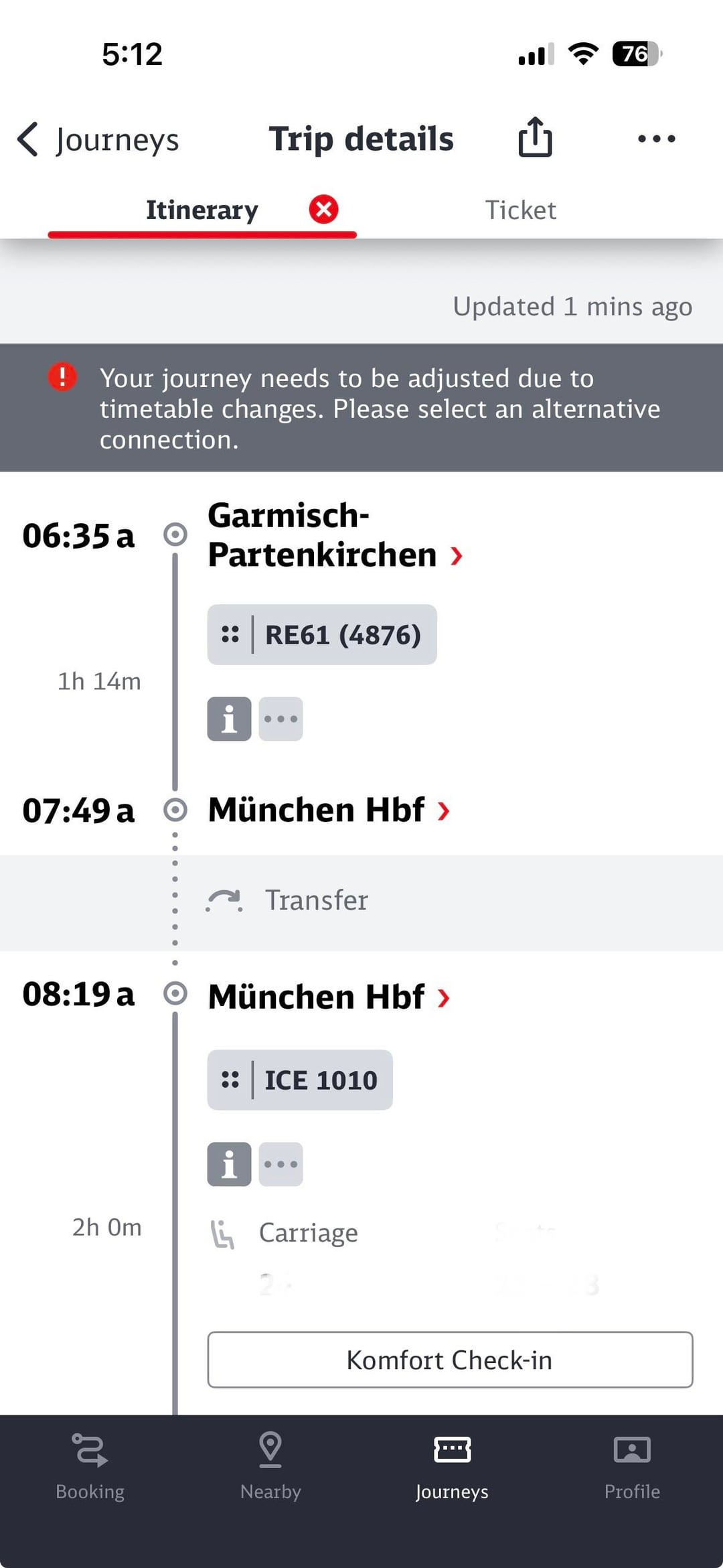 Ho prenotato l’app DB e ho appena ricevuto la notifica di un cambio di orario e devo modificare una connessione… tranne che quando guardo l’app non riesco a capire cosa fare..