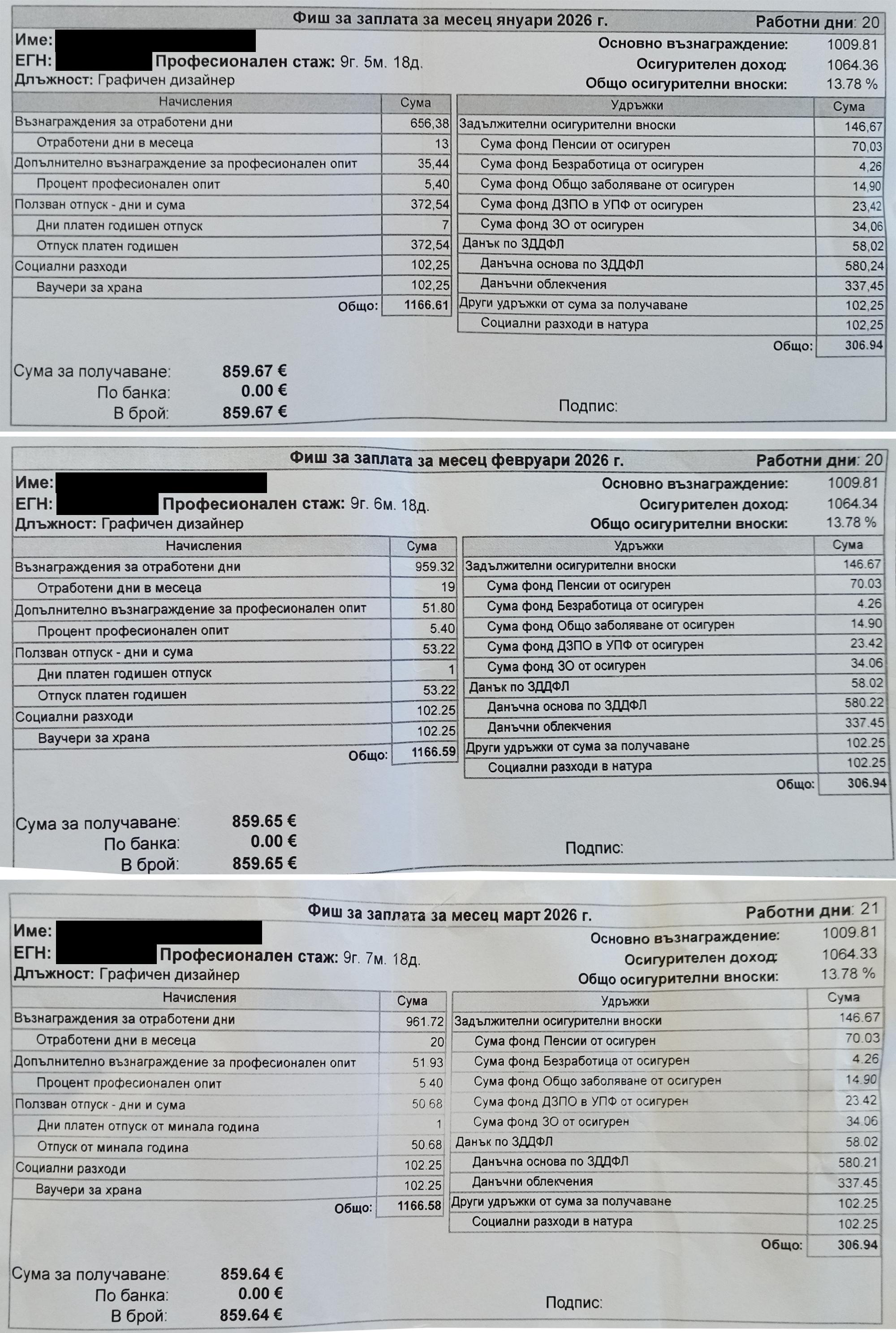 П.с виж, че не ти са еднакви работните дни. Няма как да са еднакви сумите.