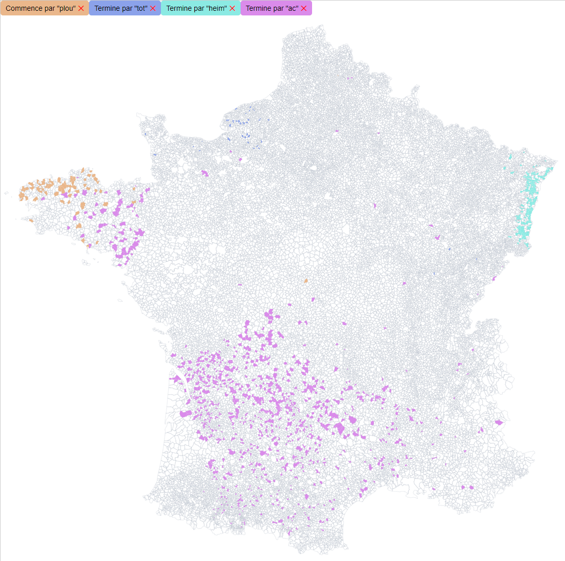 Je serais curieux de voir les villes avec comme suffixe -y. Dans mon esprit c’est surtout localisé autour de Paris mais ce serait cool de voir si il y a un lien entre elles.