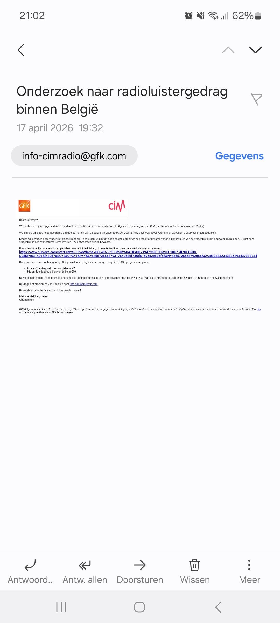 Ho ricevuto oggi una chiamata da (credo) il CIM per uno studio che stanno facendo sull’uso della radio in Belgio. Ho pensato: perché no, ma dopo la telefonata (come hanno fatto ad avere il mio numero?) mi hanno inviato un sondaggio via email.