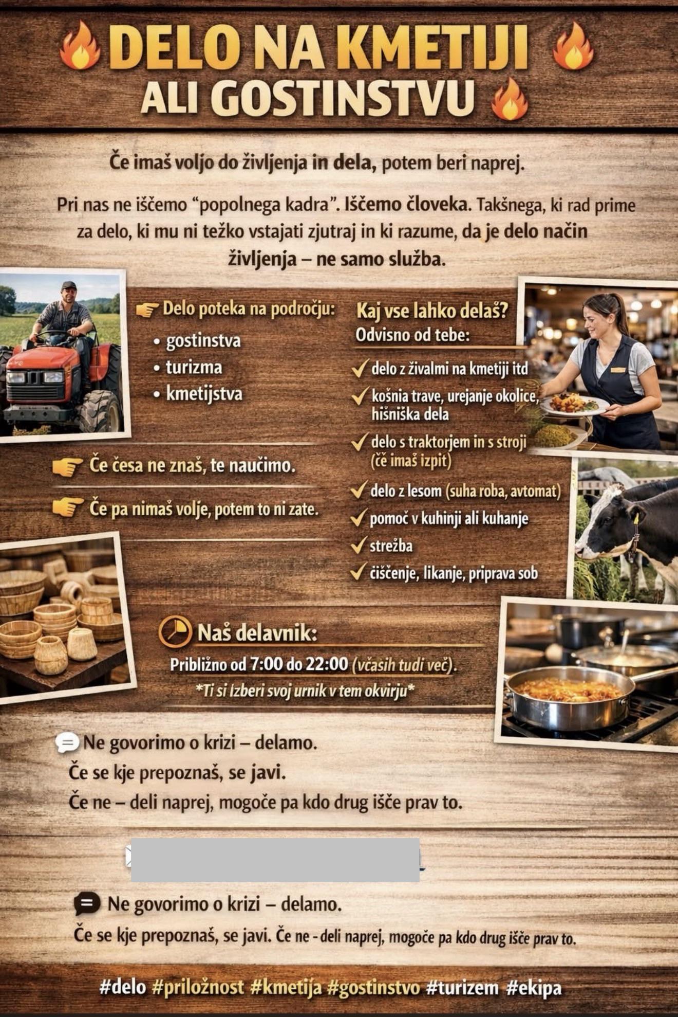 Razumem njihov point, delo na kmetiji pac ni tako da se sam odštemplaš pa greš, ampak po tem oglasu sodeč je tvoja edina opcija da se preseliš tja pa daš svoje življenje za ta šiht. Ne vem kdo bi se na to prijavu, ce ni lih nek druzinski clan.