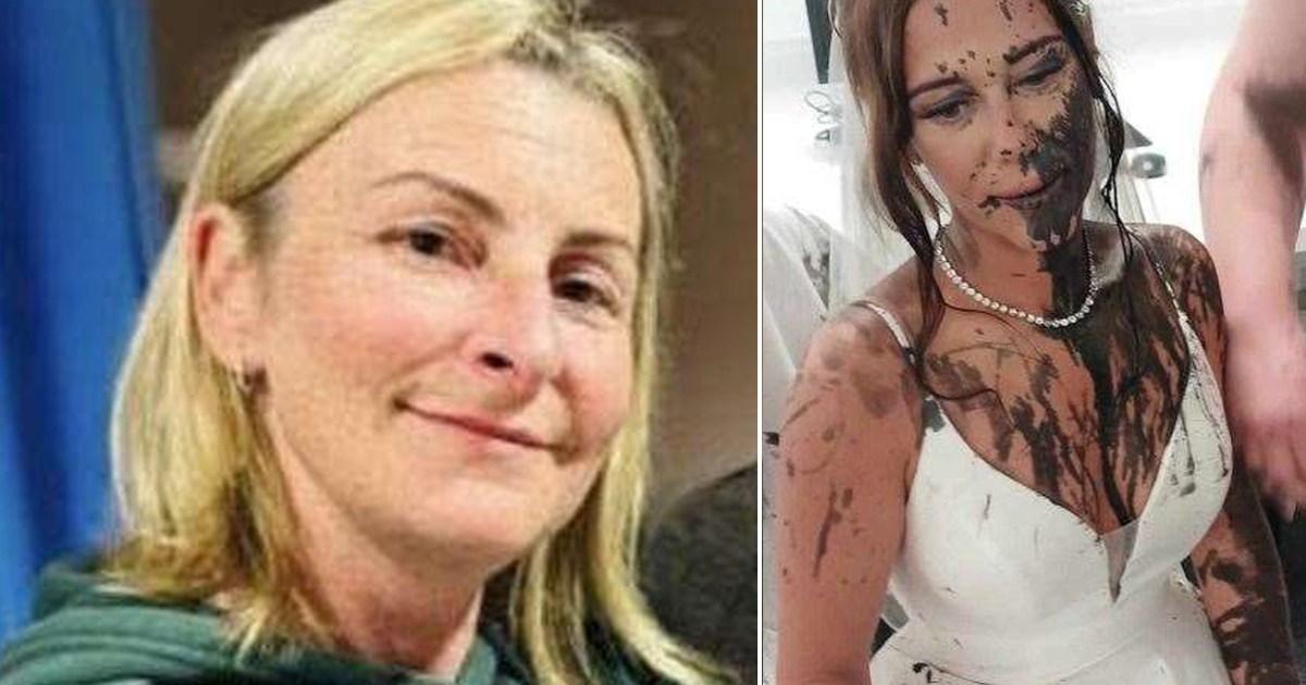 apparently the painted bride was accused of attempting to trip up the artist while she walked the isle at her own wedding.