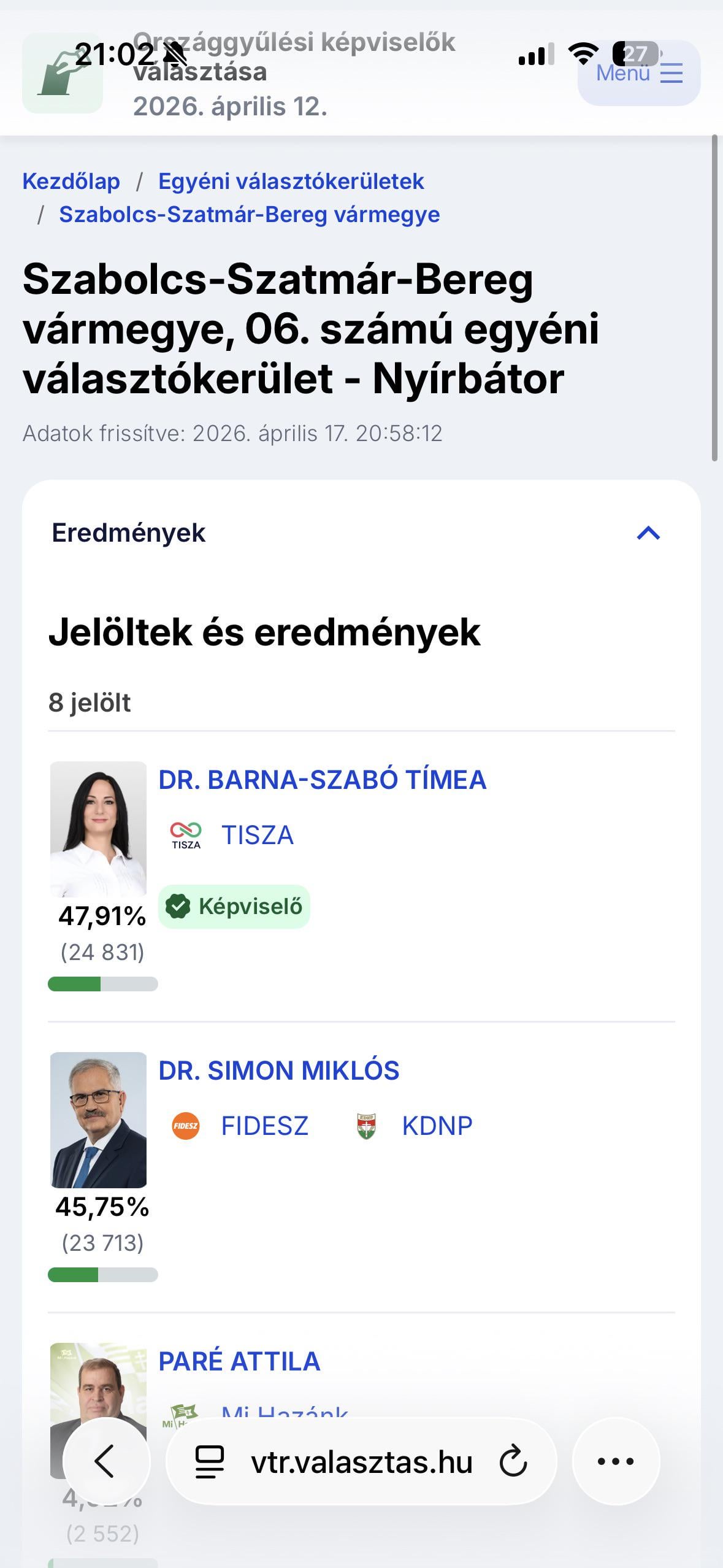 DragonfruitPlane7035 on 17/04/2026 19:12 Hogy lehet ezt élőben követni? Mármint nézem a honlapot, de honnan lehet tudni, hogy épp melyiket számolják és lesz eredmény az adott körzetben?