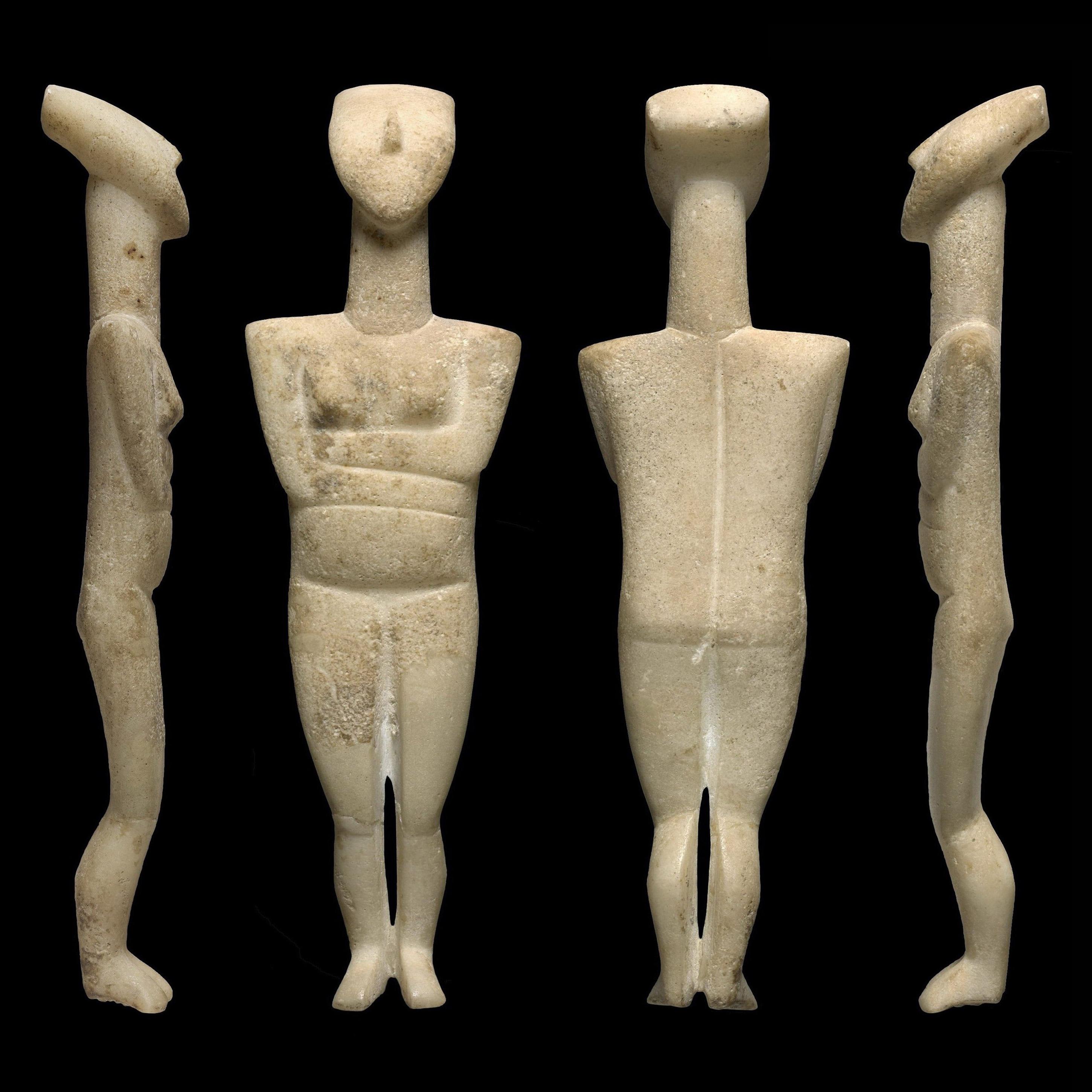 Figurina femminile in marmo delle Cicladi, tipo normale – variante Middle-Spedus. attribuito allo scultore del Museo di Israele (da Pat Getz-Gentle). Periodo proto-cicladico II, c. 2600 a.C. Altezza: 22,86 cm. Galleria d’arte dell’Università di Yale, New Haven, Connecticut, Stati Uniti. (2900×2900