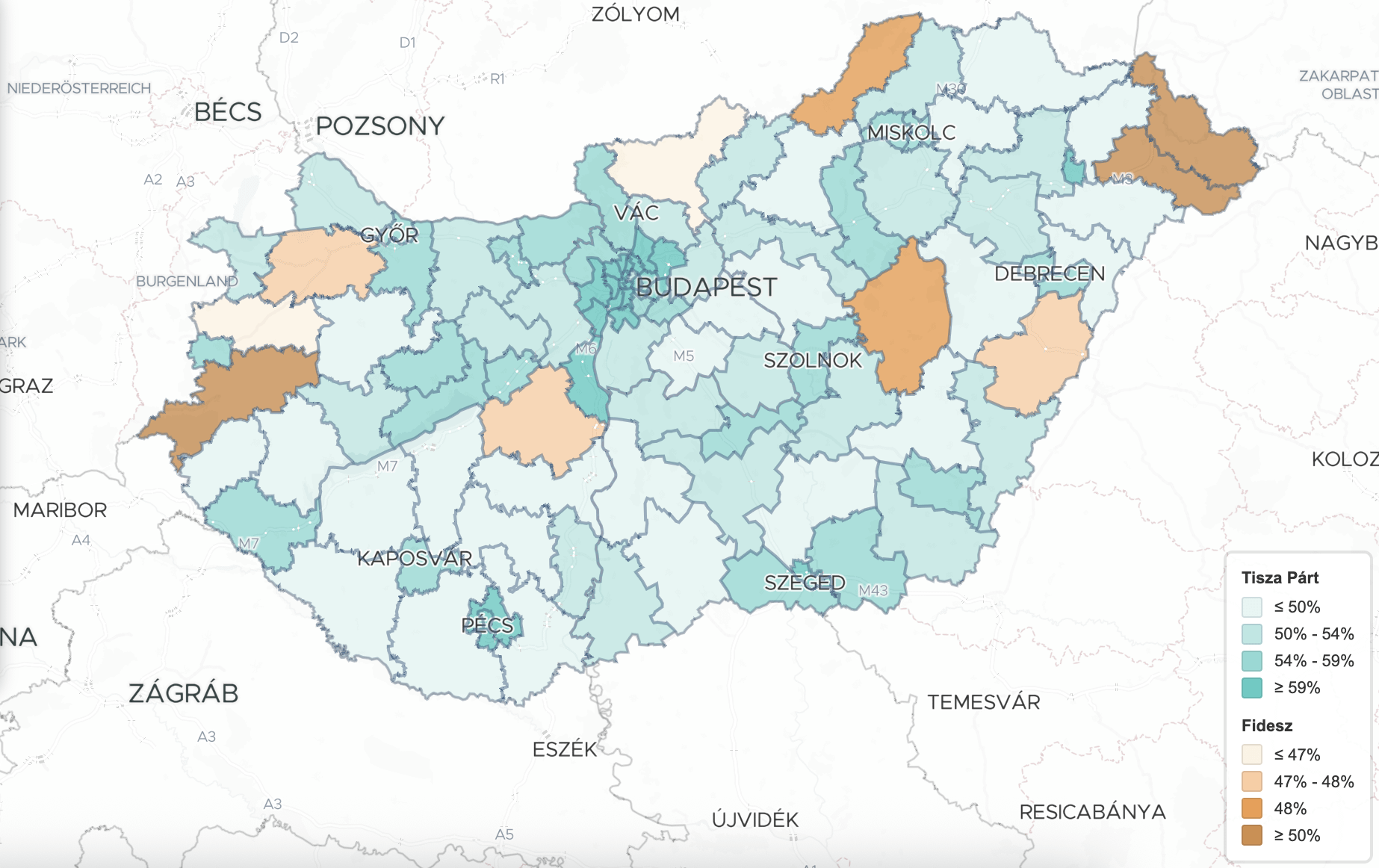 Ciò significa che Fidesz ha perso tutti gli insediamenti con più di 14.400 abitanti e ha vinto Tisza.