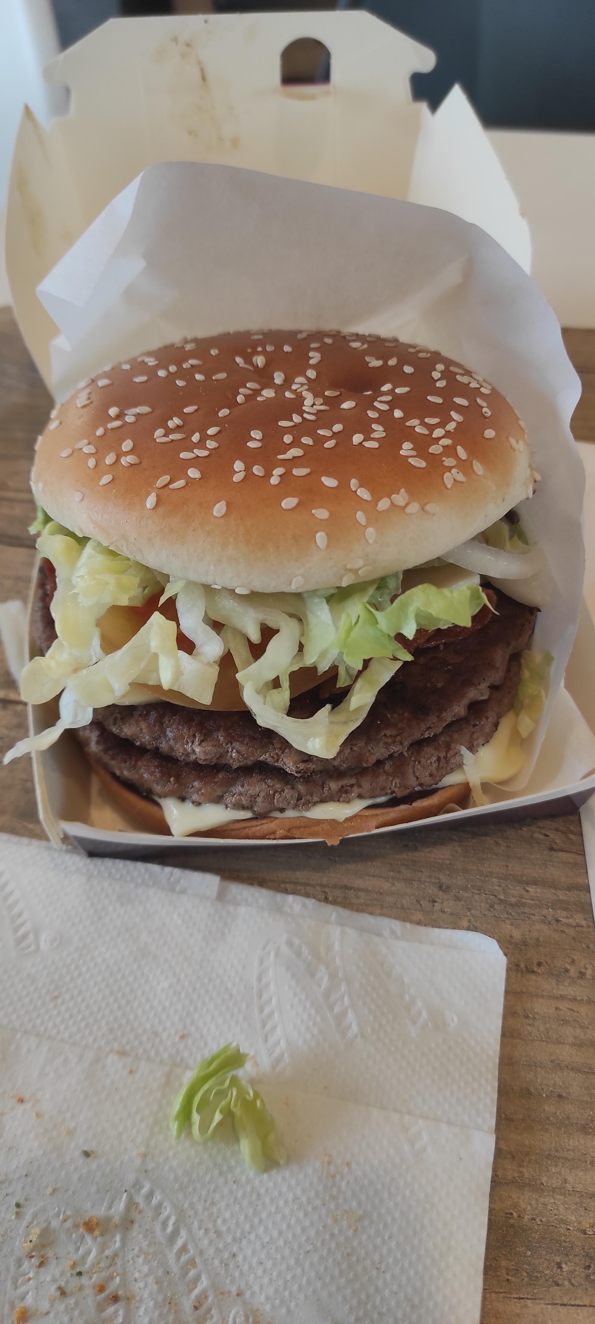 Dopo X anni non vedevo l’ora di andare a mangiare da McHovnald’s e quando ho visto il DOPPIO bacon Big Tasty (inesistente l’ultima volta che ho mangiato) nel menu, non ho esitato un secondo pensando che avrei portato il mio ex negozio di bacon abbastanza vicino a 1000 kcal.