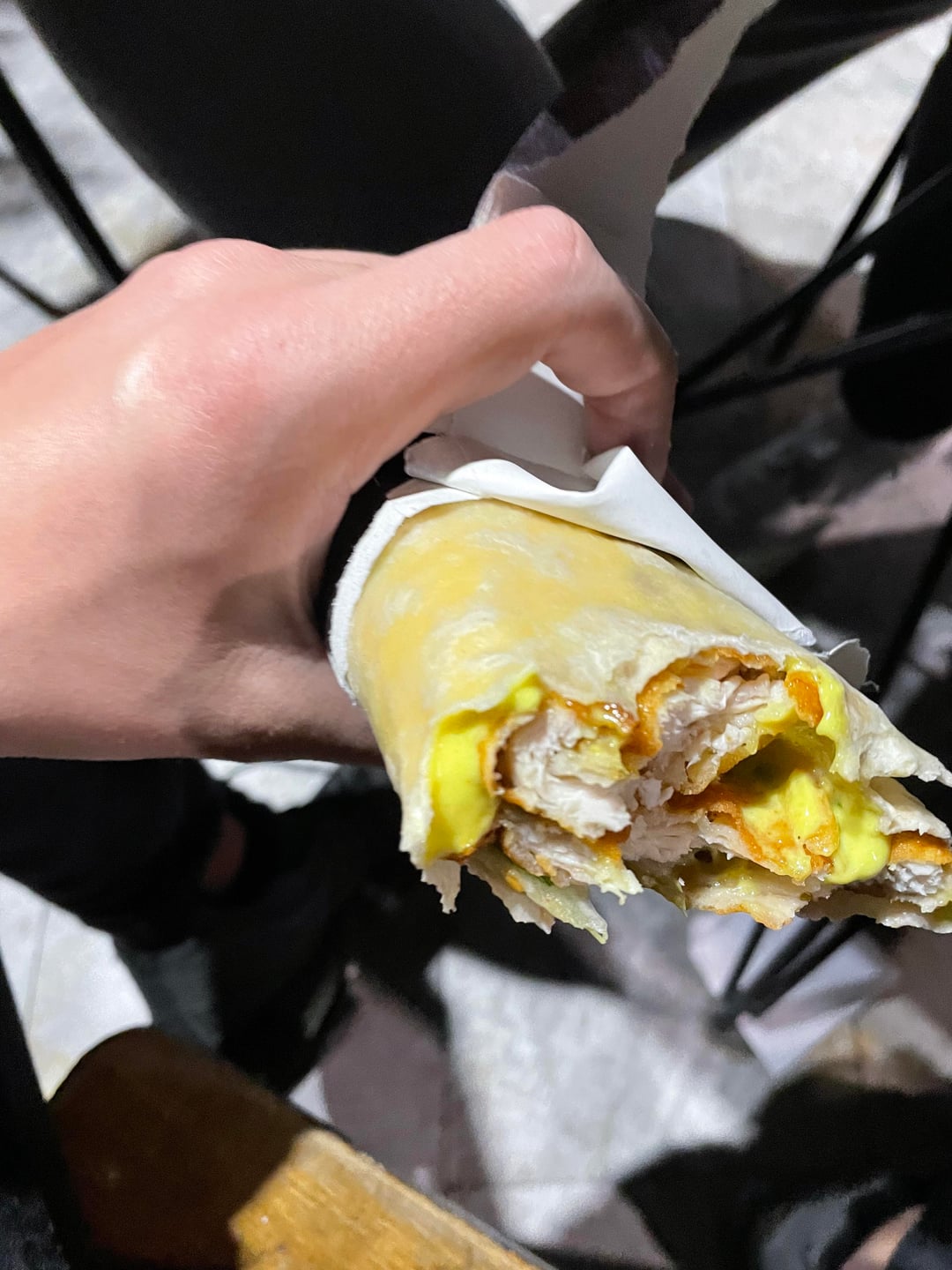 Od rojal edino crispy chiken jadam porano go pamtev ovoj nuggets wrap kako ubav pred nekolku godini mu dadov 2 sansi razocaruvack prviot pat nuggetsot imaa vkus kako onaa ribana sto e bes koski i isto posle 2-3 griza go frliv vtoriot pat valjda bev pogladen i stignav do urdata ili so i da beshe pa pak zavrsi vo kanta di ostanuva samo crispy chikenot